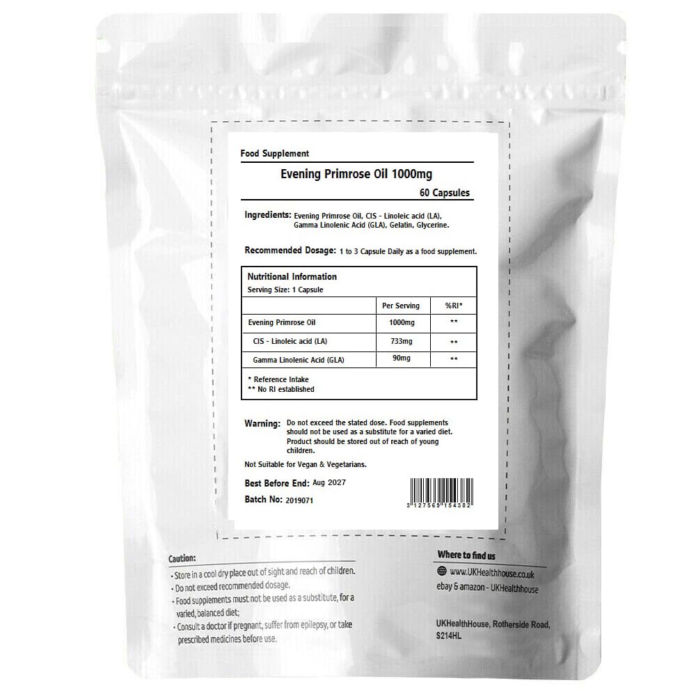 UKHealthHouse Evening Primrose Oil – EPO Capsules, 1000mg x 60 Softgels – High Strength Omega 6 GLA Content – Great for Skin, Immune System, Hormonal Pain, Hot Flushes & Women’s Health