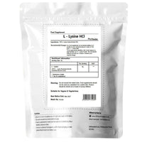 Food Supplement L-Lysine HCl Powder Ingredients: 100% L Lysine Hydrochloride (HCl). Recommended Dosage: As a food supplement we recommend adding 1g of powder too your preferred amount of water or fruit juice, 1-3 times daily. *As an approximate guideline, half a level teaspoon is approximately 1g of L-Lysine Powder. We recommend using an accurate set of scales to measure your required dosage. Allergens: None. Free From: Dairy Free, Gluten Free, Soya Free, Fish Free. Nutritional Information: Serving Size: 1g. Each 1g Providing: L-Lysine 1g(Per Serving) **(%RI*) * Reference Intake. ** No RI established. Warning: Do not exceed the stated dose. Food supplements should not be used as a substitute for a varied diet. Product should be stored out of reach of young children. Suitable for Vegans & Vegetarians. Best Before End: Mar 2027. ‘We do not provide scoops’More Info