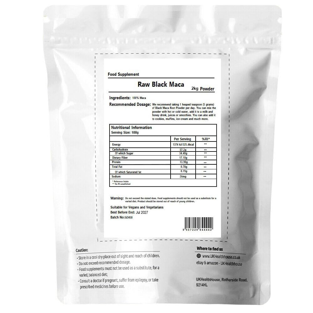 UKHealthHouse Maca Root Powder 100% Pure Peruvian Ginseng Maca Vegan Black Maca Root Powder High Strength Black Peruvian Maca Food Supplement UK (2kg)