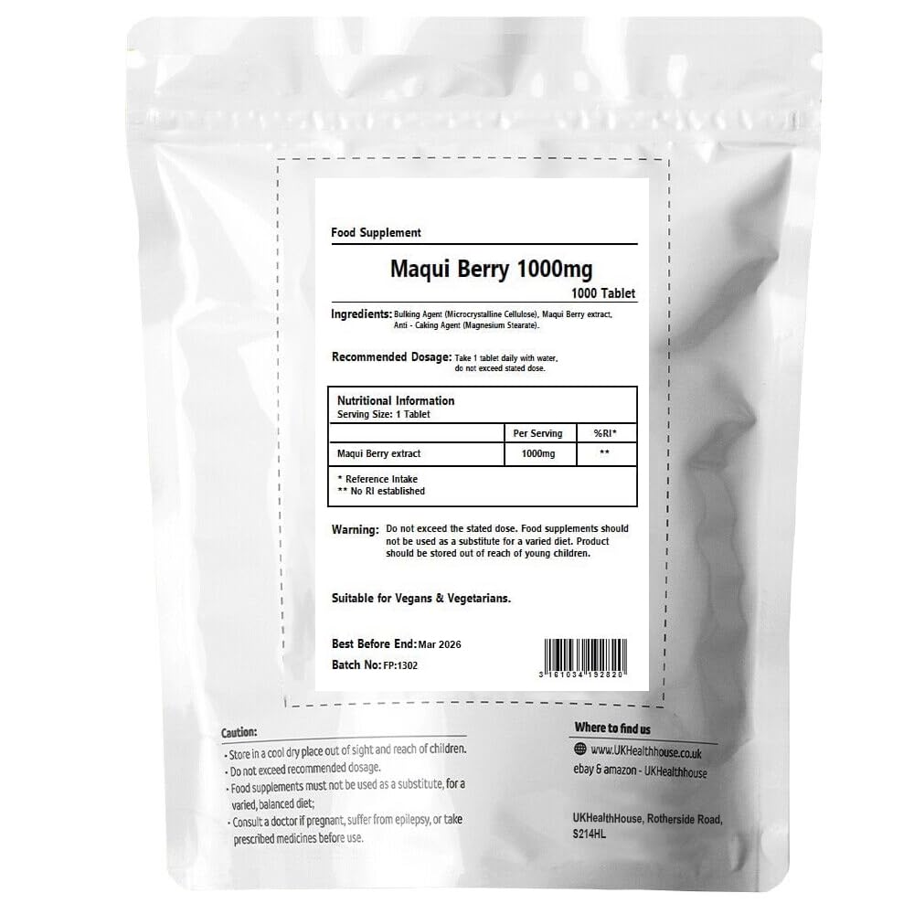 UKHealthHouse Maqui Berry Tablets 1000mg | Maqui Berry Extract Tablets | Potent Natural Antioxidant Support | Vegan & Vegetarian Friendly | Health & Wellbeing | UK (1000 tabs)