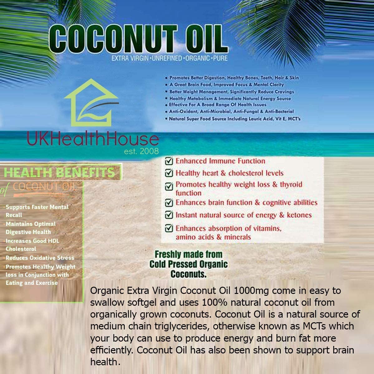 UKHealthHouse Premium Extra Virgin Coconut Oil softgel 1000mg x 180 Capsules Skin & Hair Rich MCT Oil - Cold Pressed Oil Potency - Trans-Fat Free