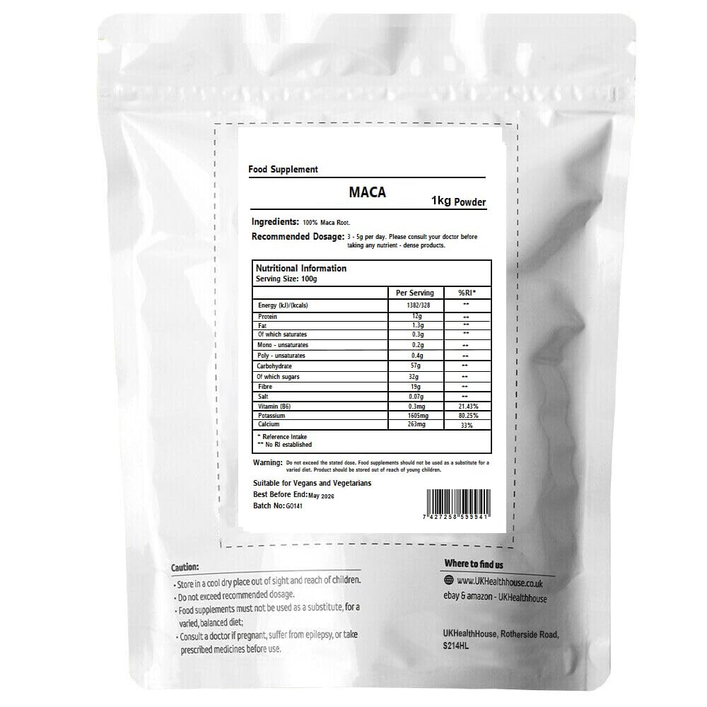 UKHealthHouse Premium Maca Root 1 kg Powder - Raw (Strong 4 Root Peruvian Superfood) 100% Maca Korzeń Proszek High Peruvian Energy Support