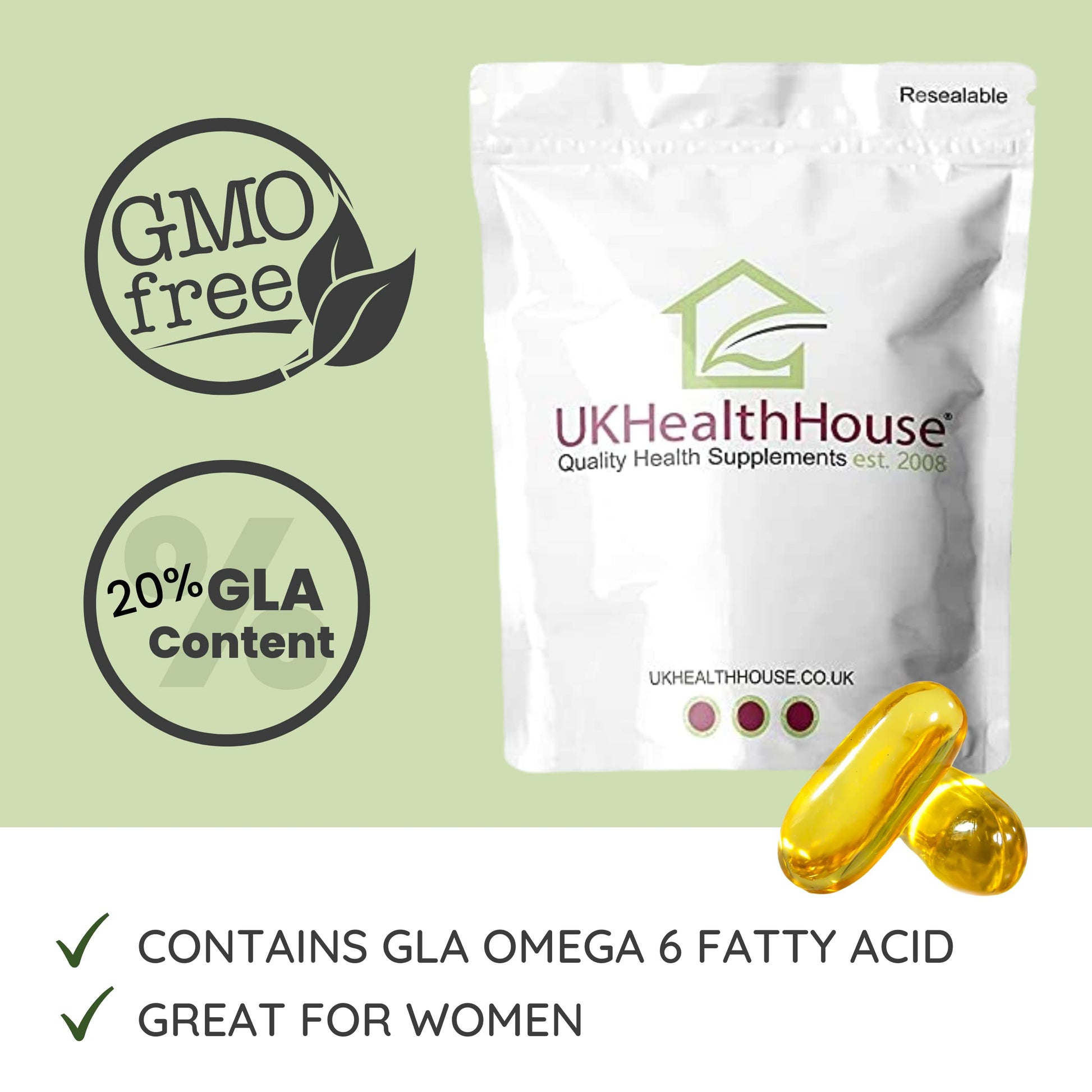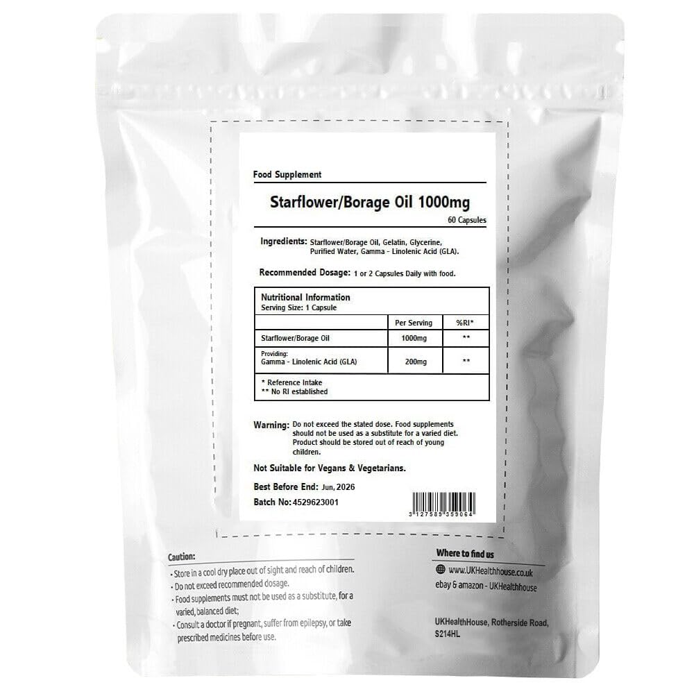 UKHealthHouse Starflower Oil – Borage Oil Capsules, 1000mg x 60 Capsules – 20% GLA Content – High Strength Omega 6 – Great for Skin, Digestion, Headaches, Women’s Health & More – 104.4g