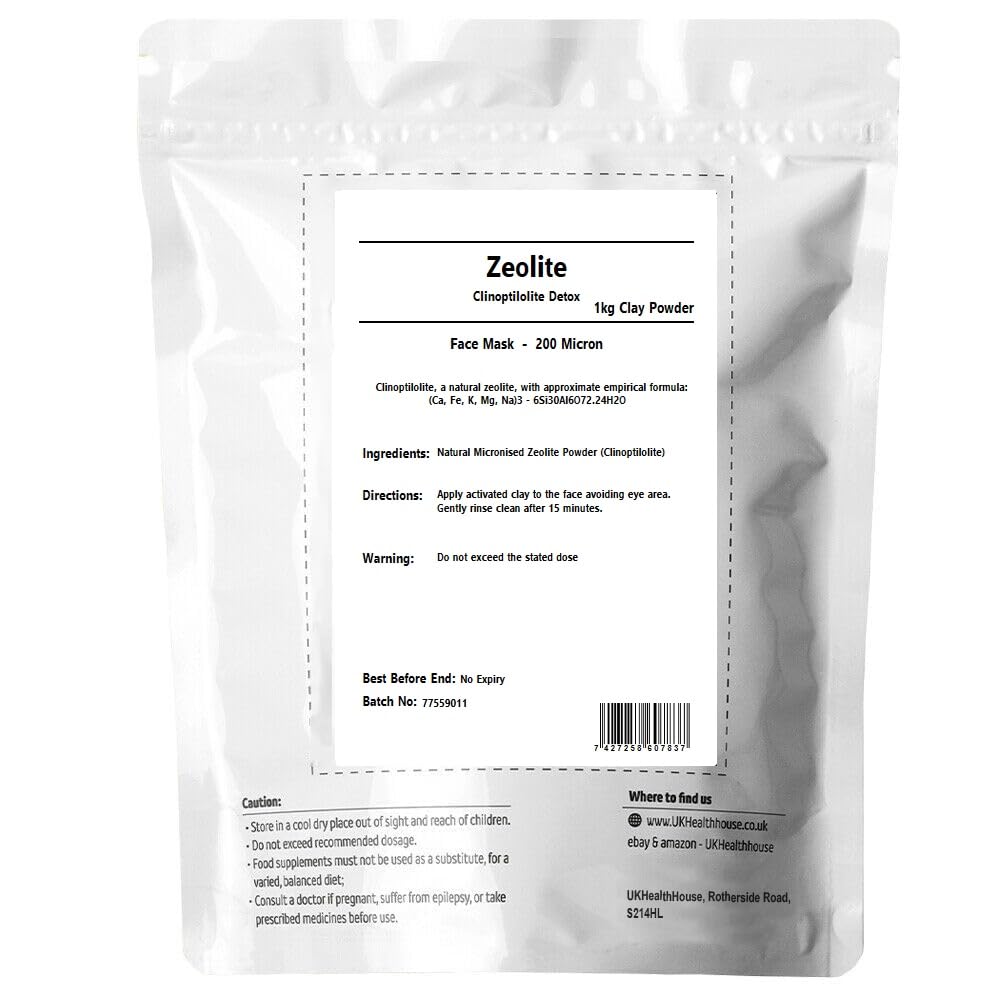 UKHealthHouse Zeolite | Clinoptilolite 95% | 3X Activated | Natural Mineral Dust Less-Than 2 µm | Micronized Zeolite Detox Powder | Easy to Use (1kg)