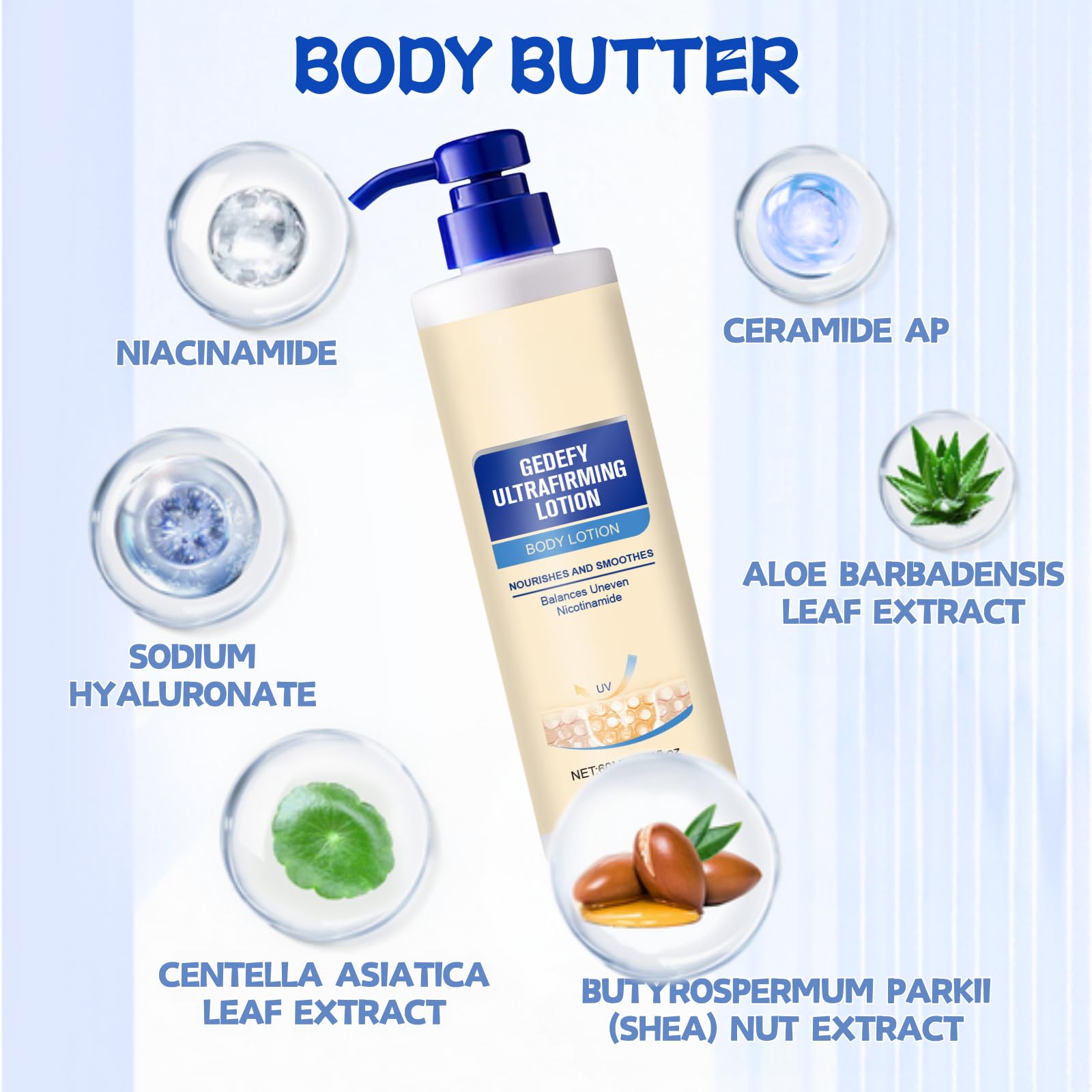 This ultra-firming body lotion is a luxurious skincare essential designed to rejuvenate and hydrate your skin. Infused with powerful ingredients like niacinamide, hyaluronic acid, and ceramides, it delivers deep nourishment while visibly improving elasticity and reducing wrinkles. Perfect for those seeking a body moisturiser for women that also brightens and evens skin tone, this lightweight formula absorbs quickly, leaving no greasy residue.