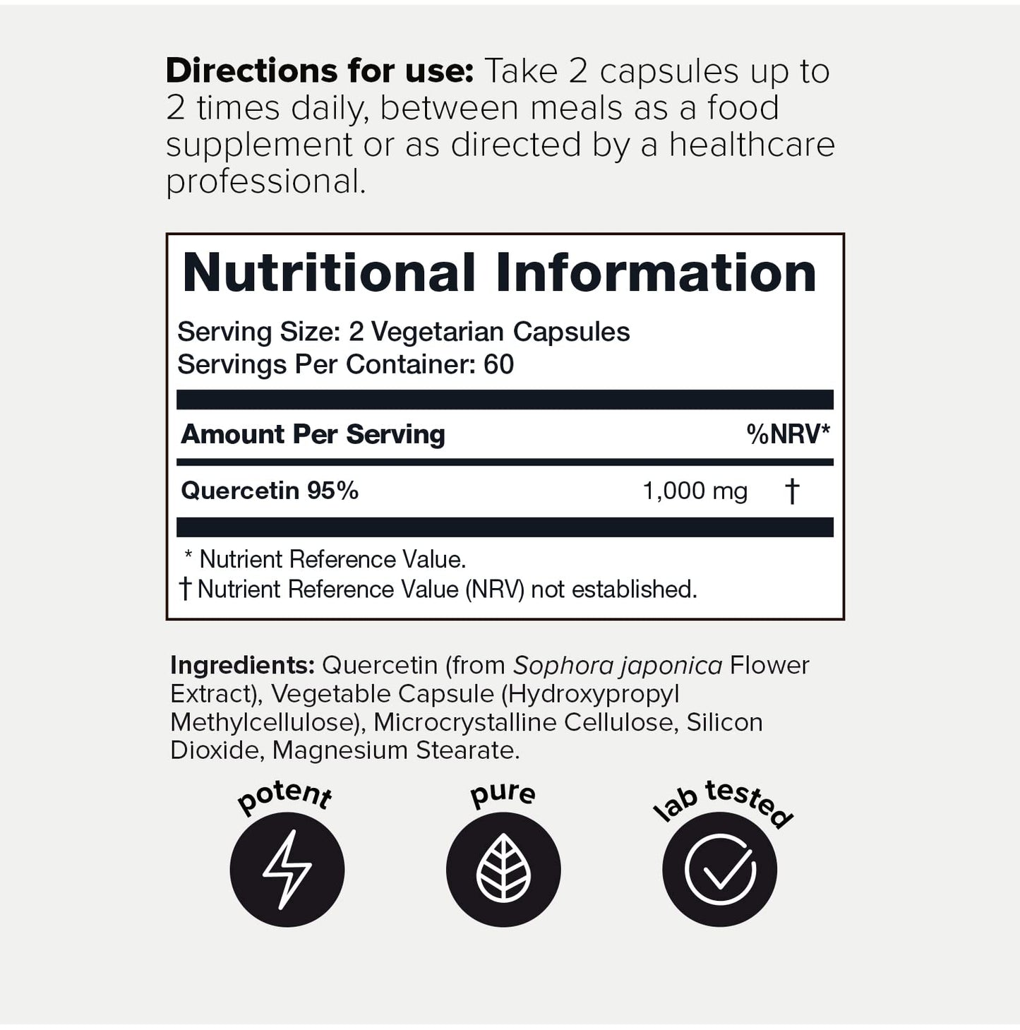 Ultra High Purity Quercetin Capsules - 95%+ Highly Purified and Bioavailable - 1000mg Per Serving - 120 Capsules Quercetin Supplement