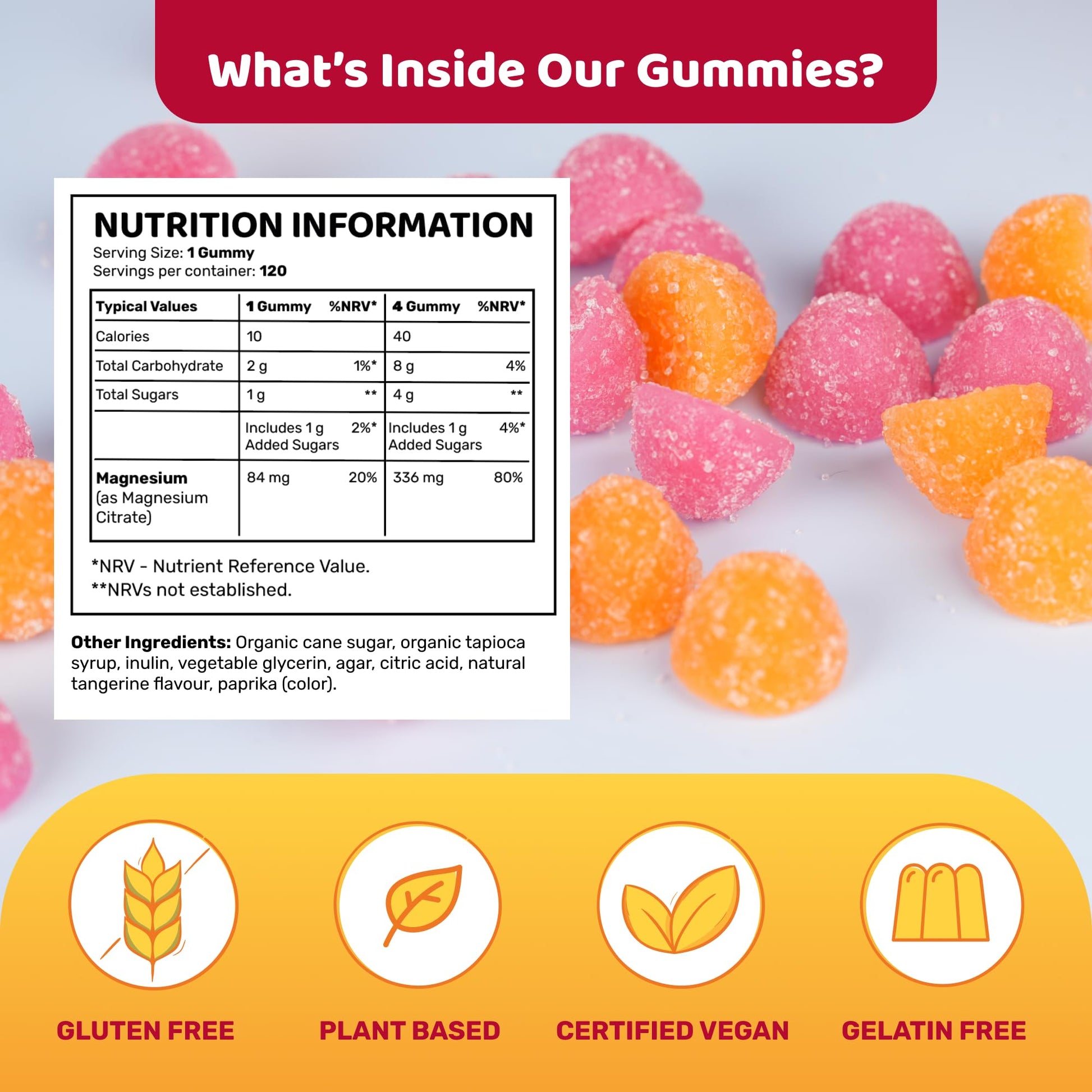 Ultra Lyte Magnesium Citrate Gummies – 336 mg Elemental Magnesium per Serving – 120 Gummies (30 Days) – Gelatin Free Vegan High-Strength Supplement – Tangerine Flavour