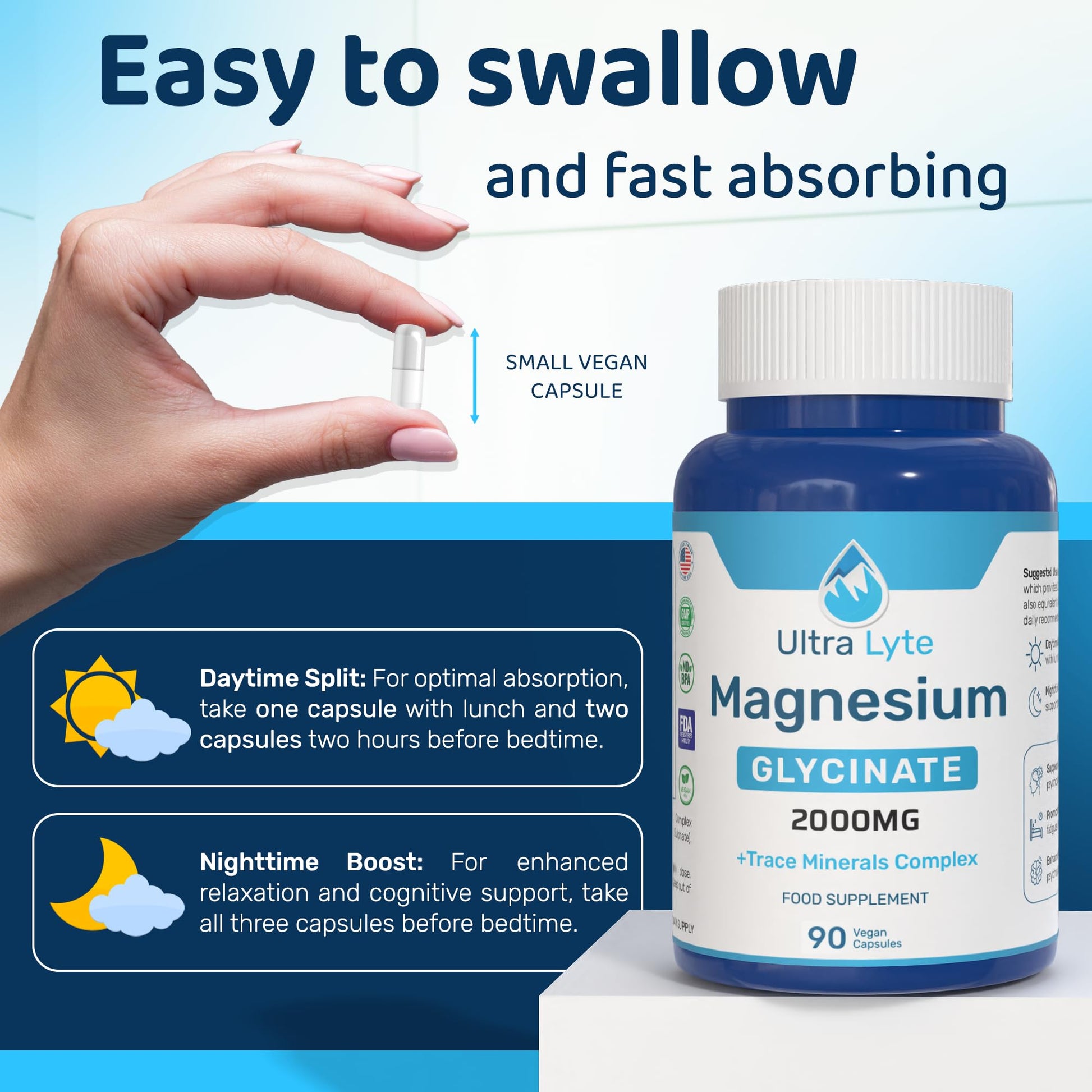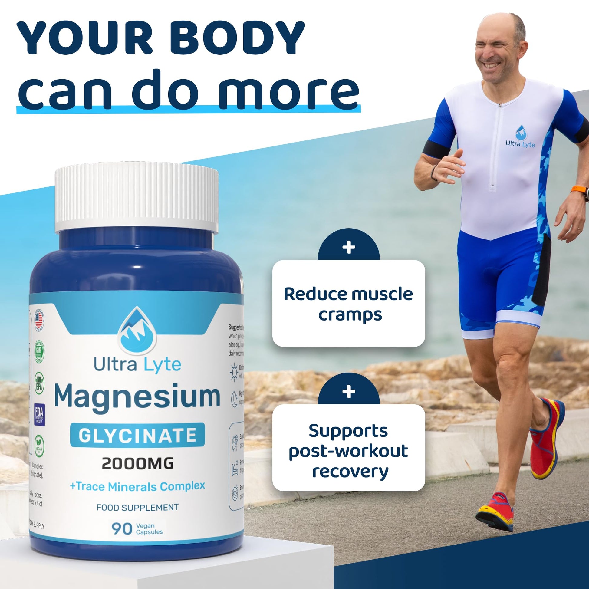 Ultra Lyte Magnesium Glycinate with Trace Minerals – High Absorption Magnesium Supplements for Sleep Aid, Stress Relief & Muscle Support – Vegan & Gluten-Free – 2000mg Magnesium – 90 Count
