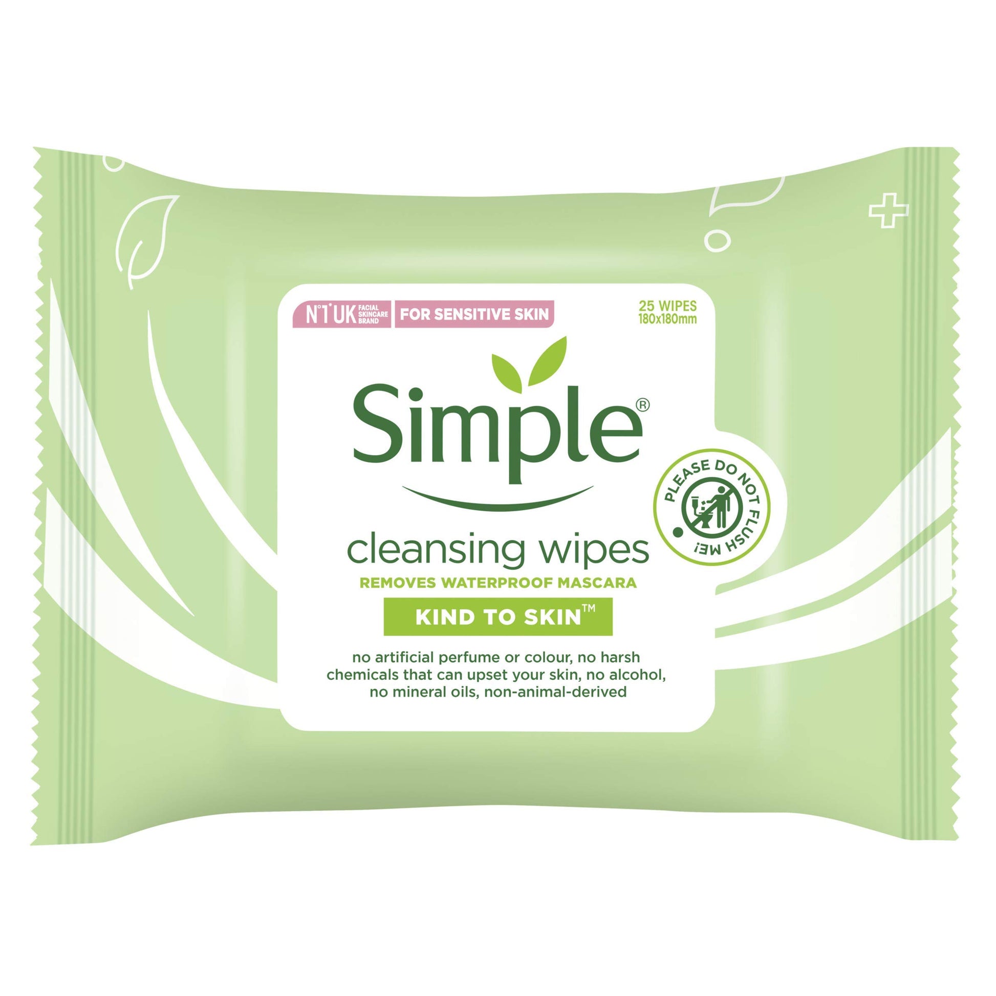 - Simple Kind to Skin Cleansing Facial Wipes lift away dirt, impurities and remove make-up effectively, even waterproof mascara, while being gentle on your skin