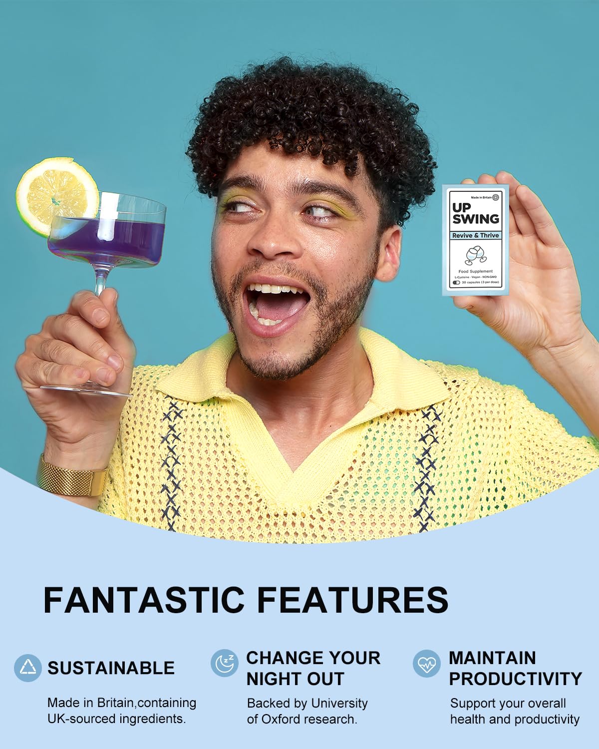 Proudly Made in the United Kingdom, UPSWING multivitamin will appear in the form of capsules and tablets which you could easily consume before each celebratory moments session.