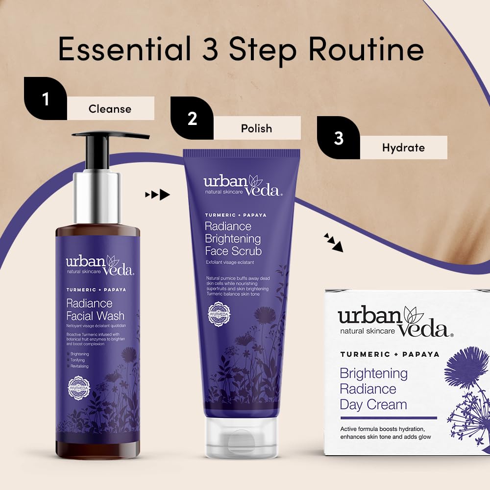 Urban Veda Radiance Facial Wash | Simple Face Wash | For Dry, Dull and Dehydrated Skin | Papaya, Licorice and Turmeric Extract | Skin Brightening Formula | Face Wash Women | Mens Face Wash | 150 ML