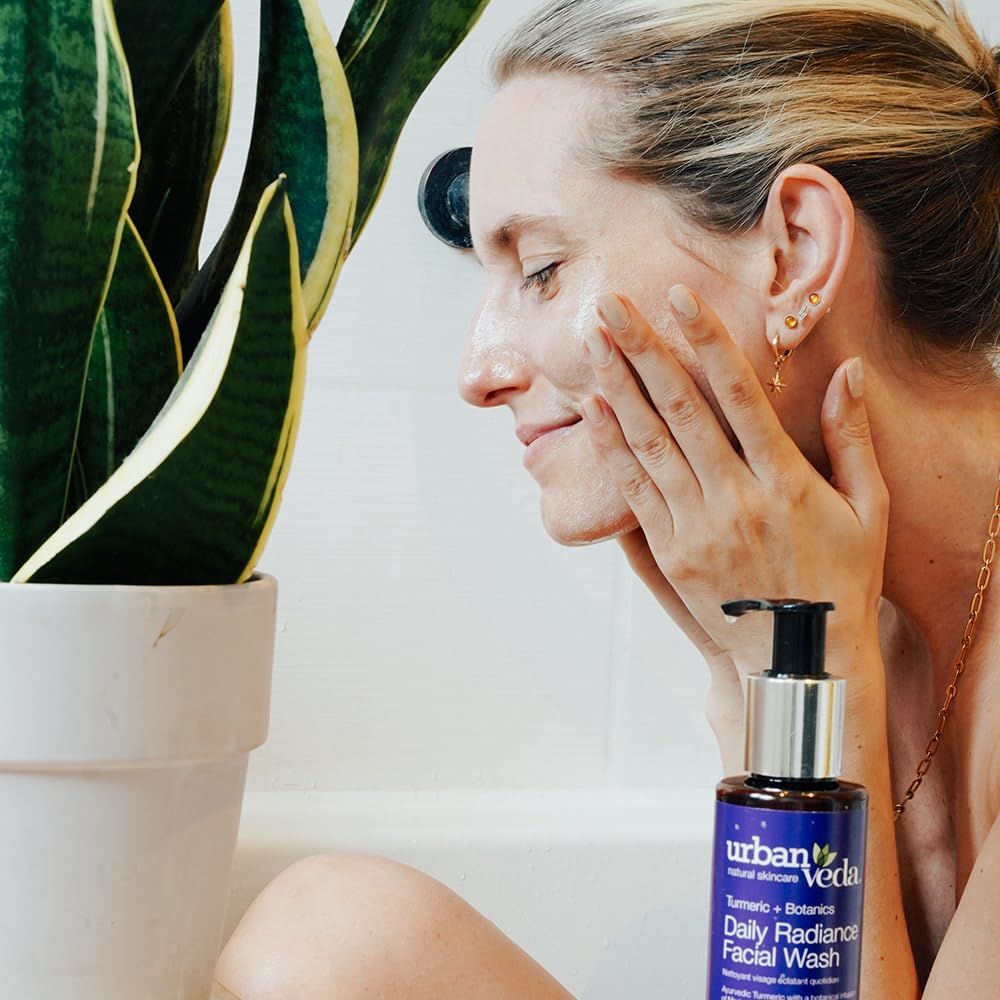 Elevate your skincare routine with Urban Veda's Radiance Facial Wash, a gentle yet effective gel cleanser inspired by Ayurvedic principles. This brightening face wash deeply cleanses and removes all traces of makeup while clarifying your complexion. Infused with bioactive turmeric extract, it helps brighten skin tone and address hyperpigmentation concerns. Superfruits like papaya, goji berry, and liquorice provide a potent blend of antioxidants and enzymes to combat free radical damage and reveal healthier-looking skin. Suitable for all skin types, including sensitive and acne-prone, this hydrating cleanser supports your skin's natural barrier function, making it ideal for those with dry or combination skin prone to blemishes. Free from harsh chemicals and cruelty-free, our natural face wash offers a balanced approach to cleansing, leaving your skin feeling soft, refreshed, and radiant. Experience the power of Ayurvedic-inspired skincare with Urban Veda's Radiance Facial Wash.More Info