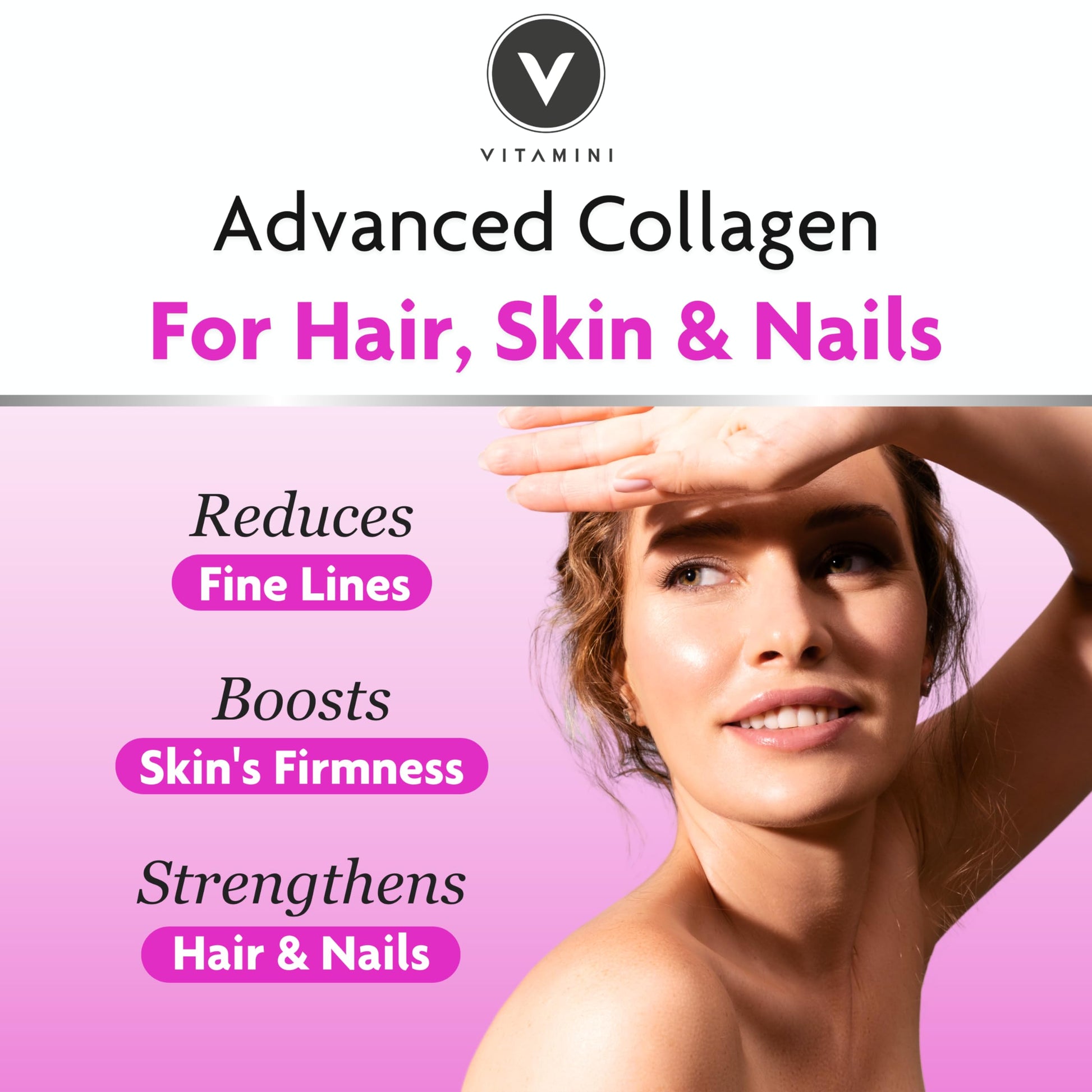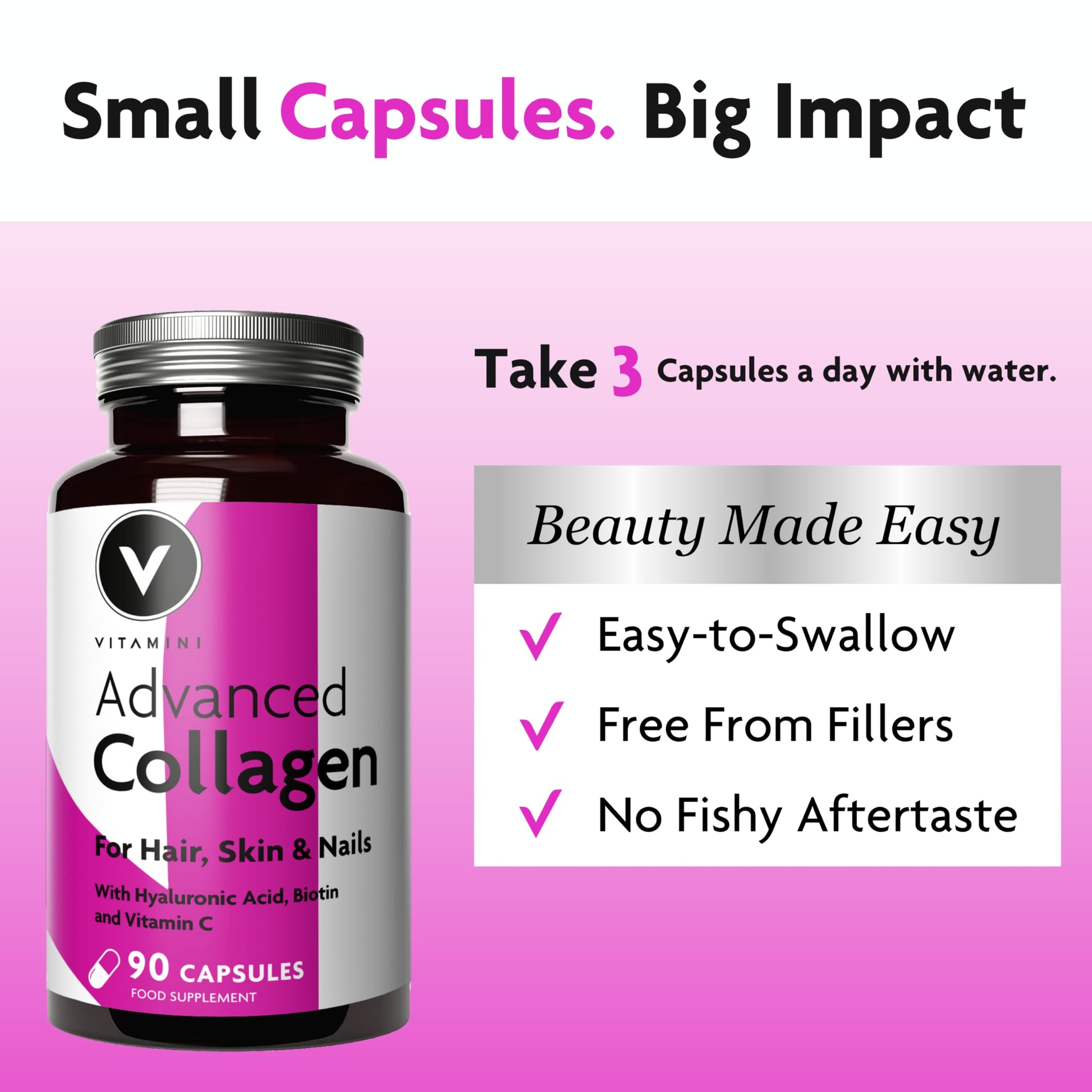 V Vitamini Bigger Pack, Better Value – Premium Advanced Collagen Supplements for Women – Marine Collagen, Hyaluronic Acid, Vitamin C & E – Radiant Skin, Hair, Nails – UK Made – 180 Capsules, 60 Day Supply