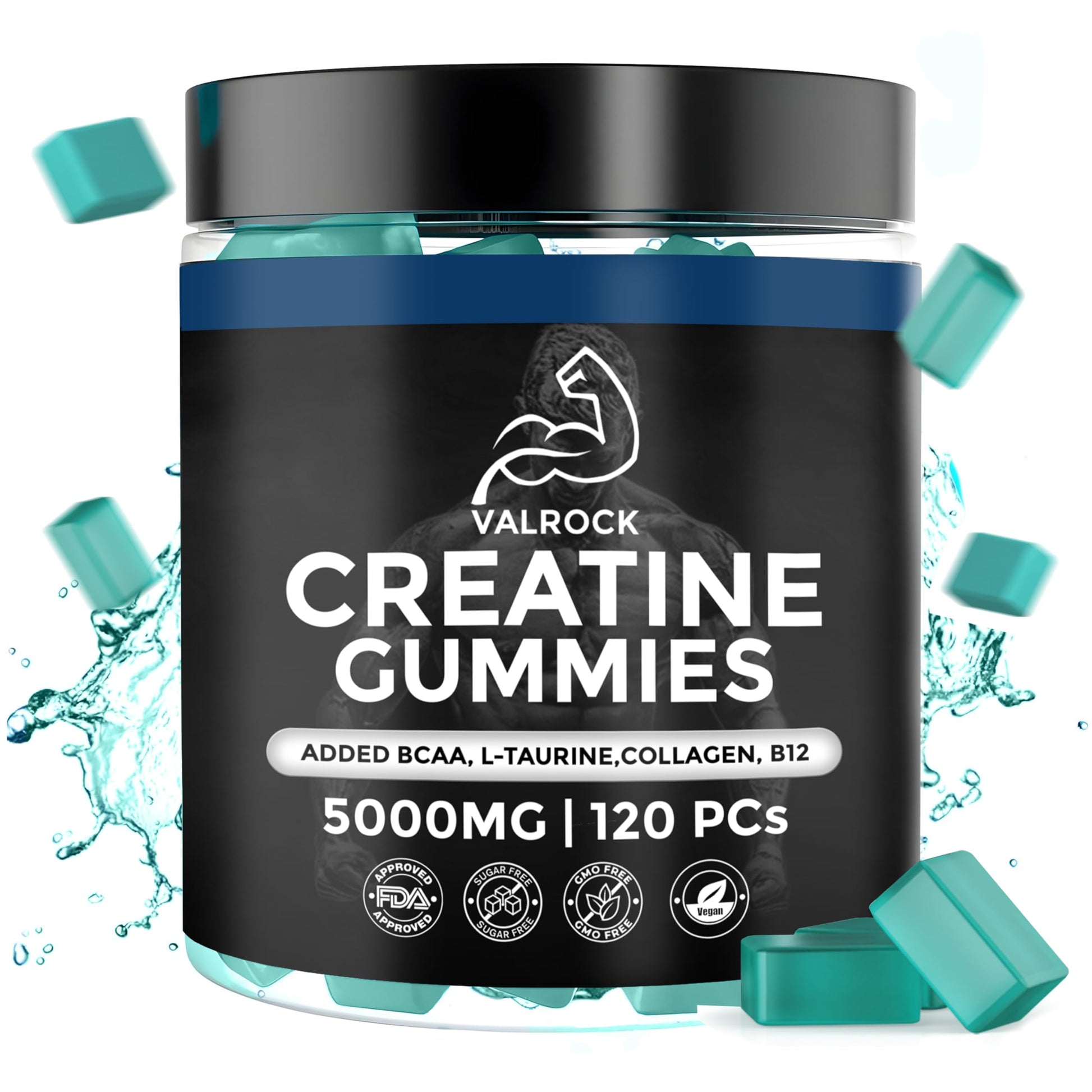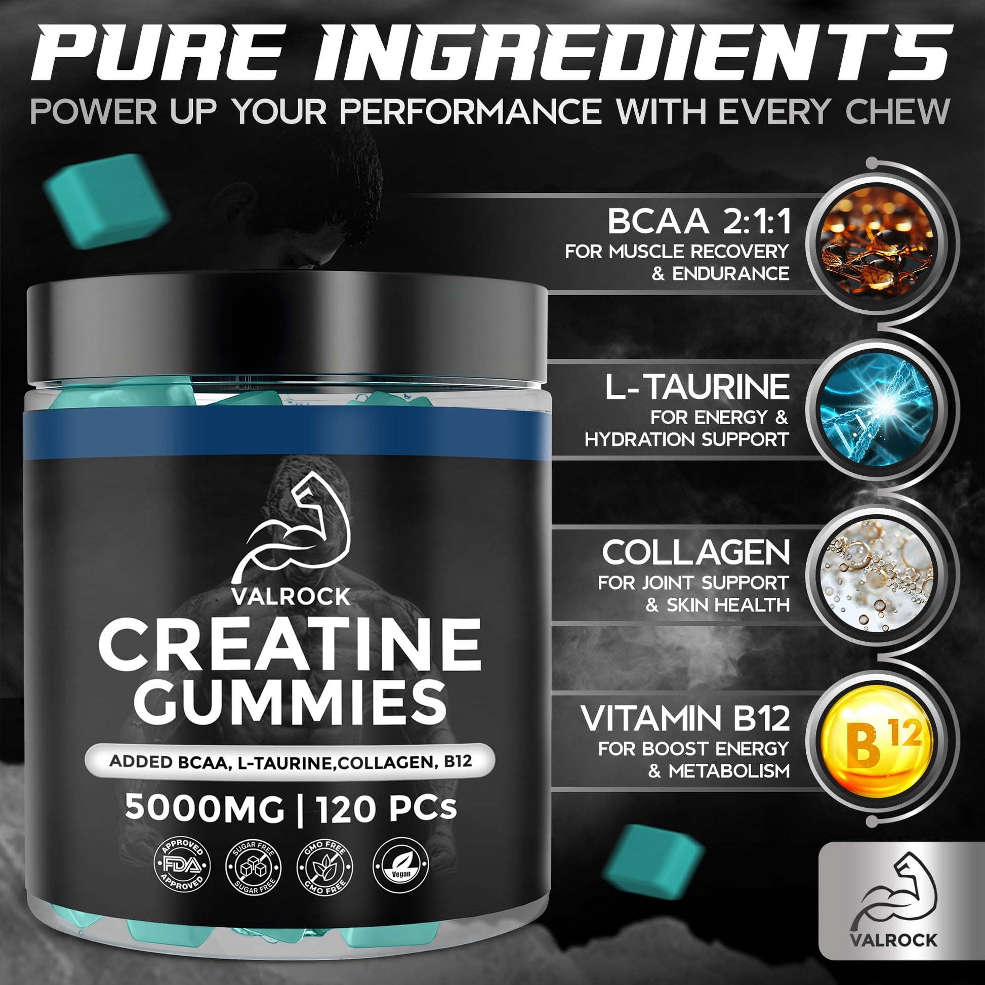 Valrock Creatine Monohydrate 5000mg 120 Gummies for Men | Added L-Taurine, BCAA's, Collagen, B12 | Muscle Growth Gains | Chewable Gummies, Mixed Berry Flavour (1 Month Supply)