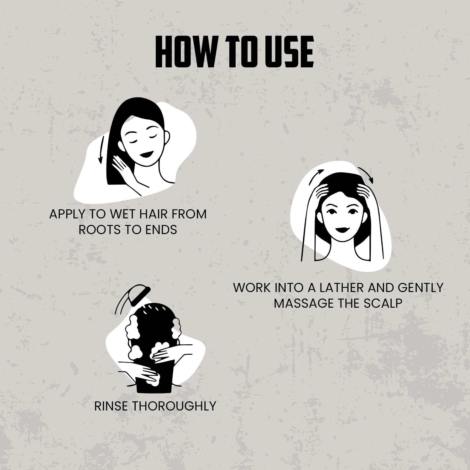 - DIRECTIONS OF USE: 1. Take an adequate amount of shampoo on your palm and massage gently into wet hair & scalp. 2. Rinse water thoroughly. 3. Repeat if necessary.