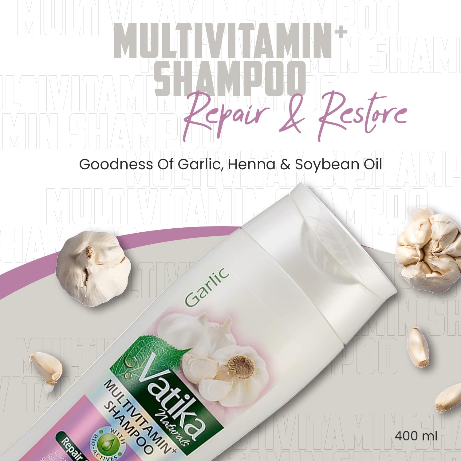 Vatika Naturals Multivitamin Enriched Garlic Shampoo - 400ml | Goodness Of Garlic, Henna & Soybean Oil | For Repairs and Restores Weak Hair