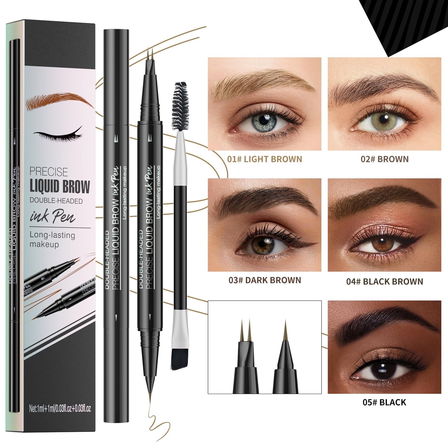 Vawolecy Microblading Eyebrow Pen, Brow Pencil 2-in-1 Dual-Ended Eyebrow Pencil with Micro-Fork-Tip Applicator and Precise Brush-Tip Create Hair Like Brows, Last All-Day