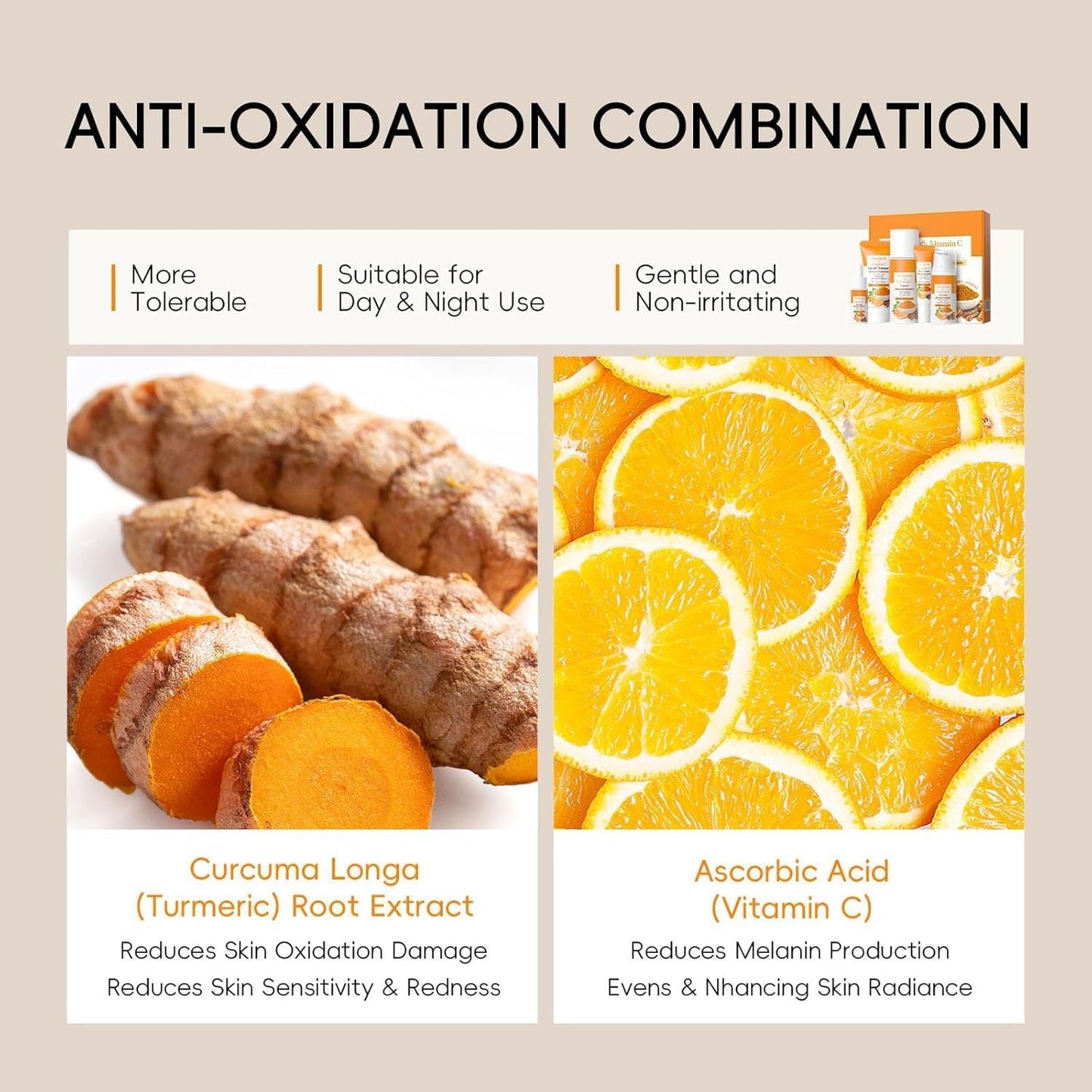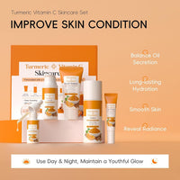 Vawolecy Turmeric Skin Care Gift Set - Even Tone with Vitamin C, 5 In 1 Women Skincare Gift Set Including Face Cleanser Toner Serum Eye Cream and Face Moisturizer