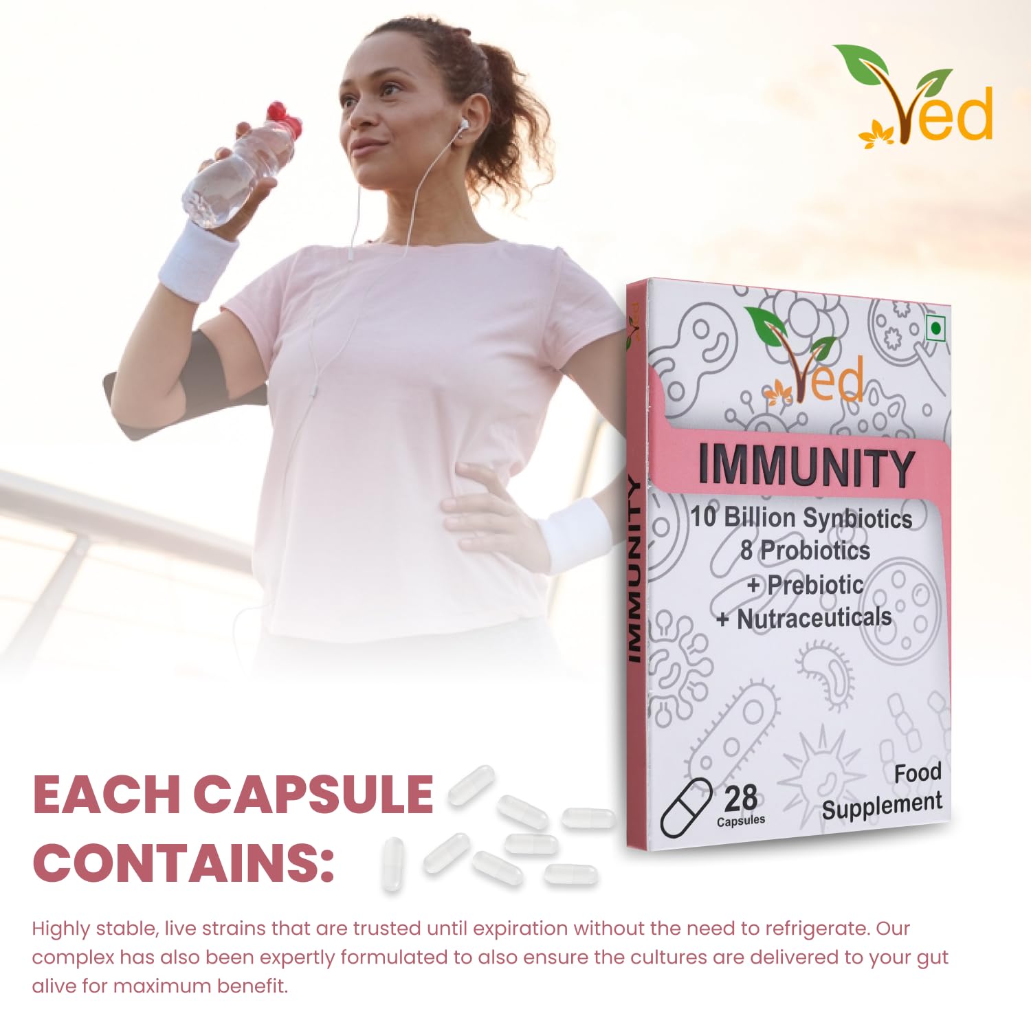 VED Immunity Complex Probiotics and Prebiotics Complex - 10 Billion CFU - 20 Live Bacterial Cultures - 28 Probiotic Complex Capsules for femaie & Male - Lactobacillus Plantarum 28 days Supply.