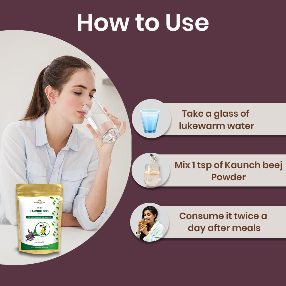 Vedikroots VedikRoots Kaunch Beej Powder - Tap Into The Power of Ayurveda for Increased Strength and Stamina (100g)