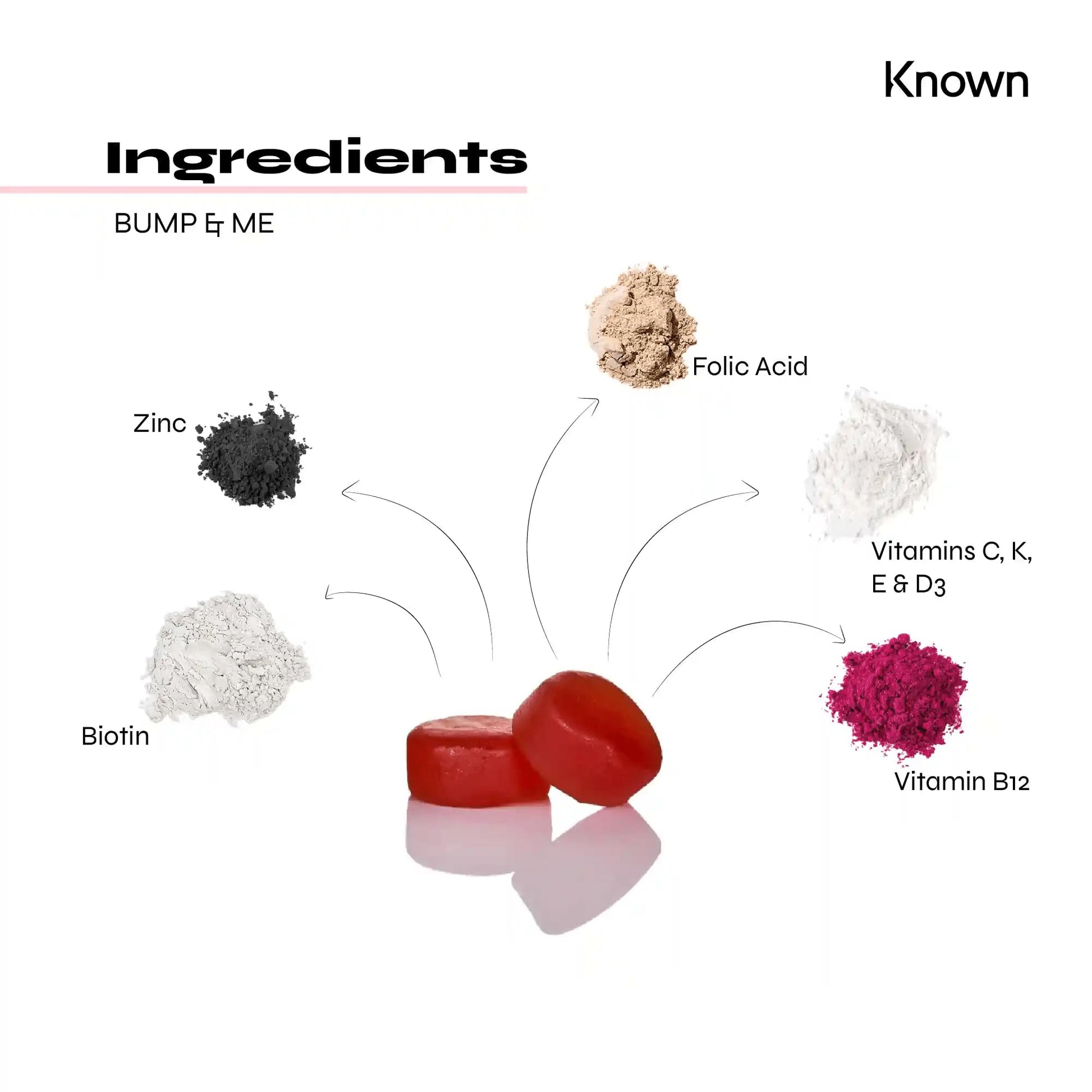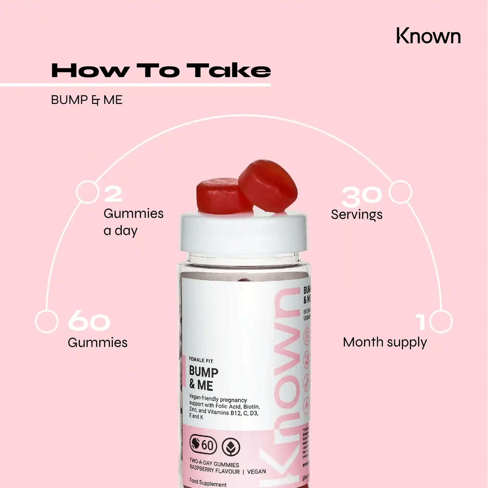 Vegan Bump and Me Folic Acid Pregnancy Vitamin Gummies for Women by Known Nutrition | 60 Two-a-Day Gummies (One Month’s Supply) | Prenatal & Postnatal Support | Raspberry Flavoured Gummies… (1)
