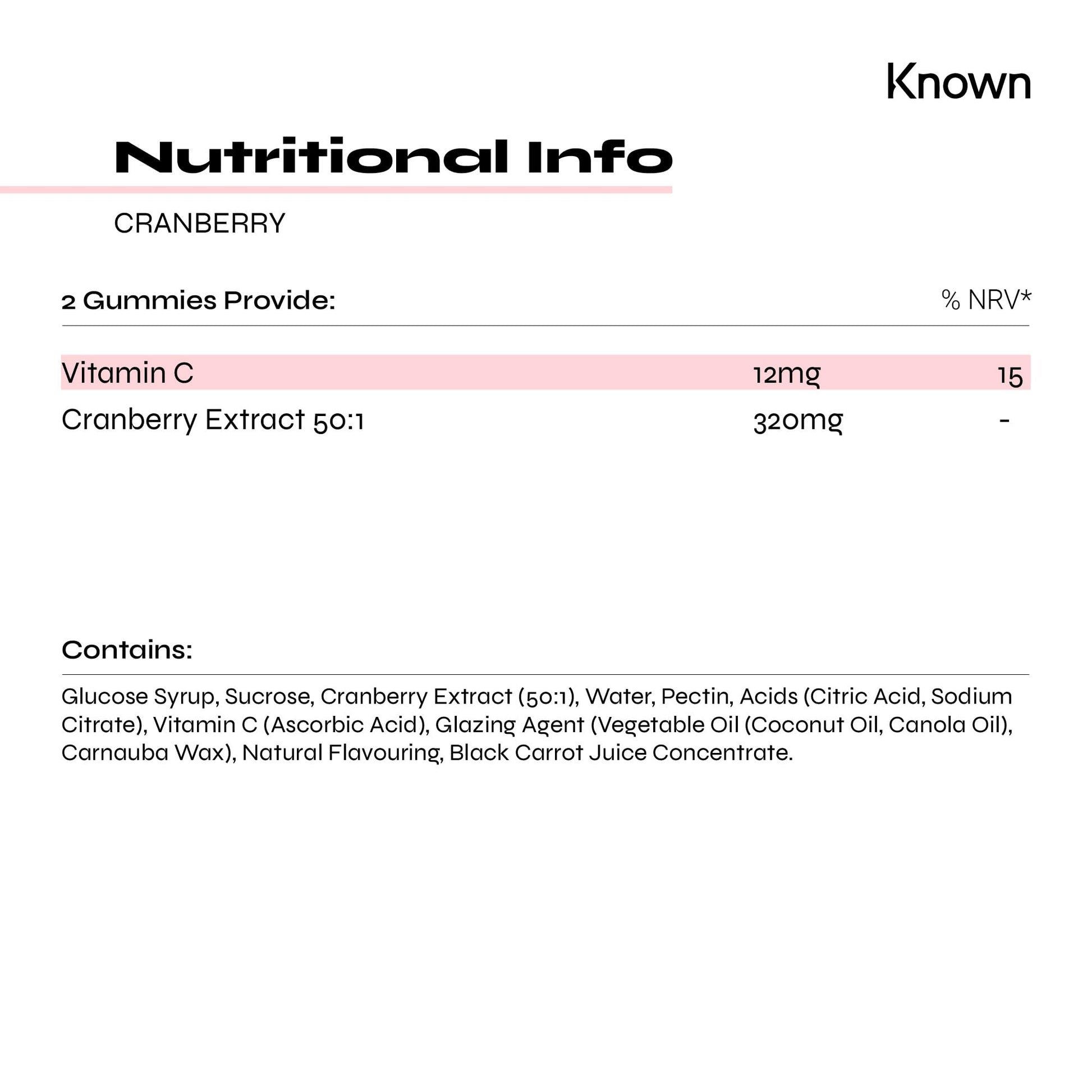 Vegan Cranberry Gummies by Known Nutrition | Natural Cranberry Support | Delicious Natural Cranberry Flavour | 60 Two-a-Day Vegan Vitamin Gummies (One Month’s Supply)