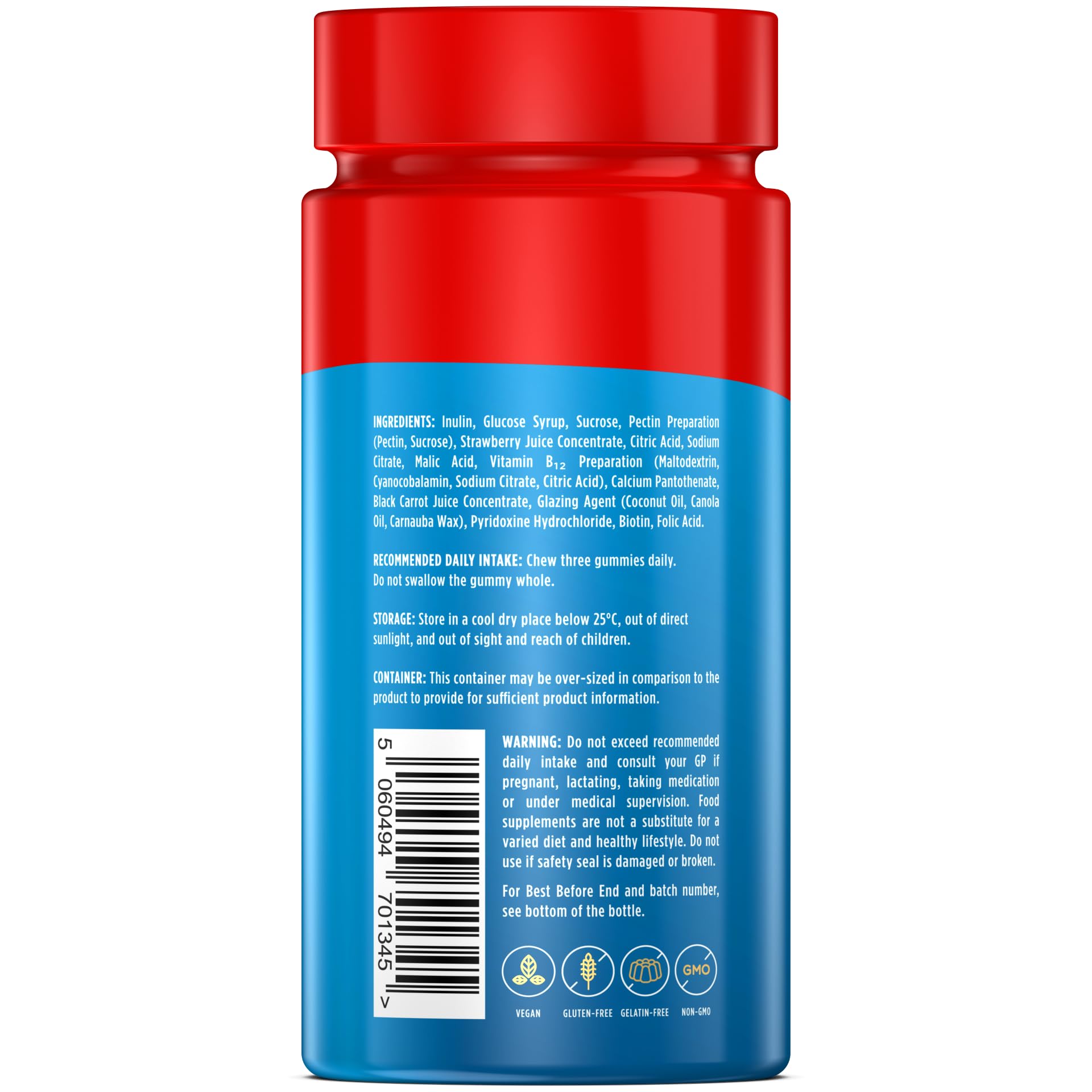 Vegan High Fibre Gummies Wellgard – High Strength Fibre Gummy Vitamins B₆, B₁₂, Biotin, and Folic Acid, Strawberry Flavour, UK Formulated