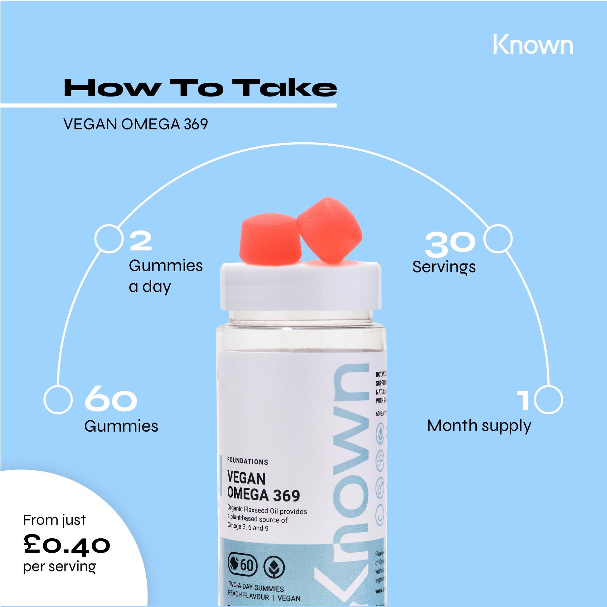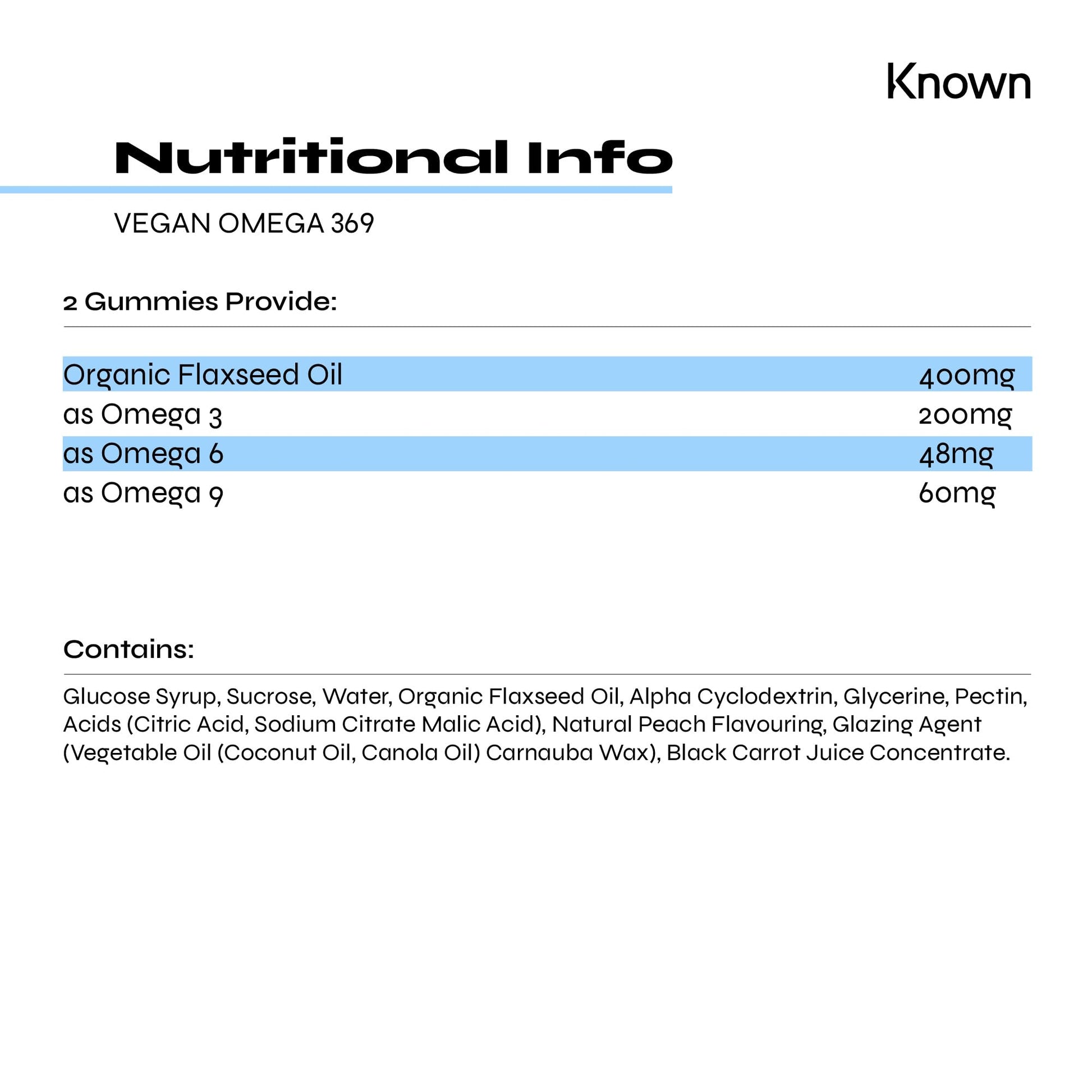 Vegan Omega 369 Gummies by Known Nutrition | Natural Heart and Brain Health Support | Delicious Natural Peach Flavour | 60 Two-a-Day Vegan Vitamin Gummies (One Month’s Supply)