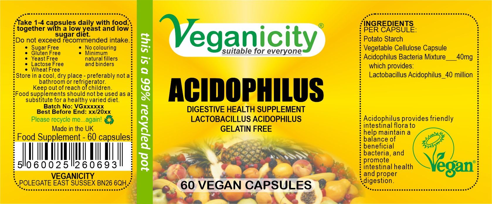 Veganicity Acidophilus Probiotic : Digestive Health Supplement : 60 Vegan Capsules, in a Planet-Friendly 99% Recycled Pot