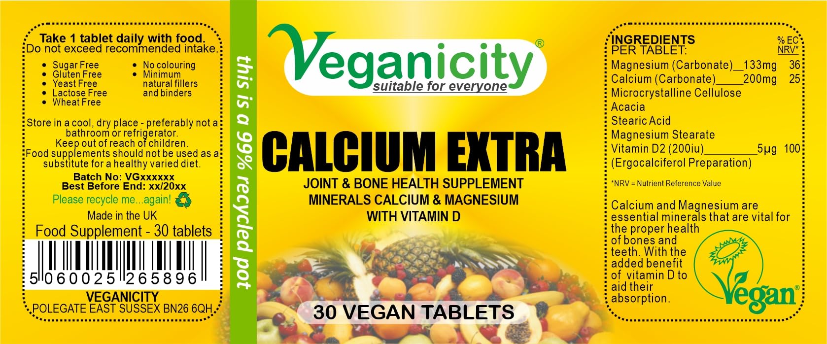 30 Vtabs of this Vegan Combo of Calcium, Magnesium & Vitamin D, Calcium Extra helps maintain joint and bone health, the nervous system and the cardiovascular system.Free from sugar, lactose, yeast, gluten and wheat with no colourings and minimal natural fillers and binders.