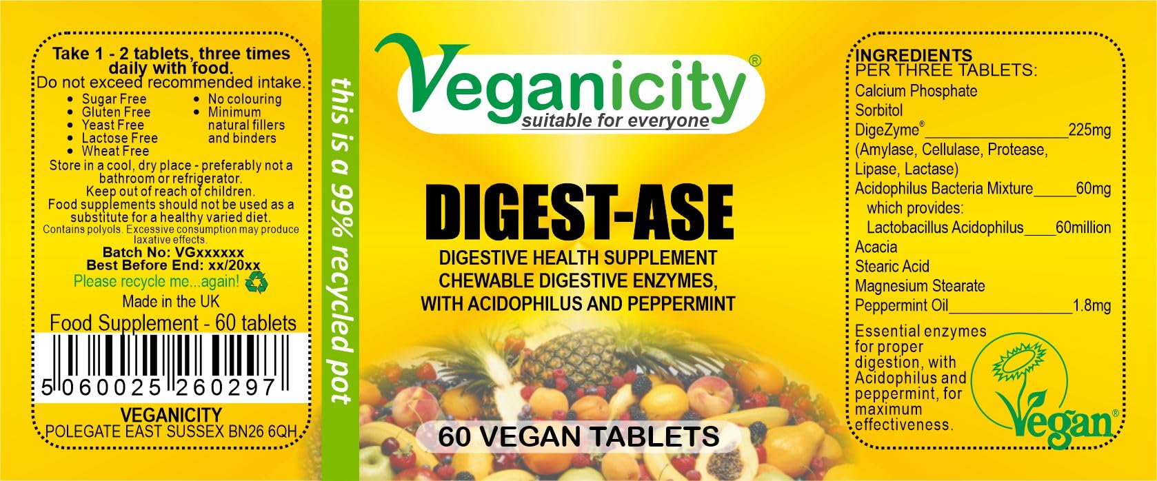 Veganicity Digest-Ase : Digestive Health Supplement : 60 Tablets, in a Planet-Friendly 99% Recycled Pot