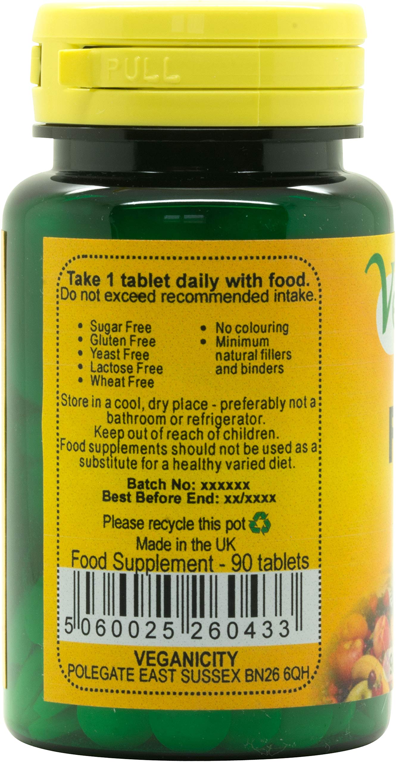 Free from sugar, lactose, yeast, gluten and wheat with no colourings and minimal natural fillers and binders.