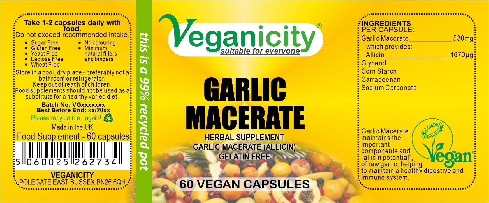 Veganicity Garlic Macerate 530mg (1670Μg Allicin): Digestive and Immune Herbal Supplement : 60 Vcaps, in a Planet-Friendly 99% Recycled Pot