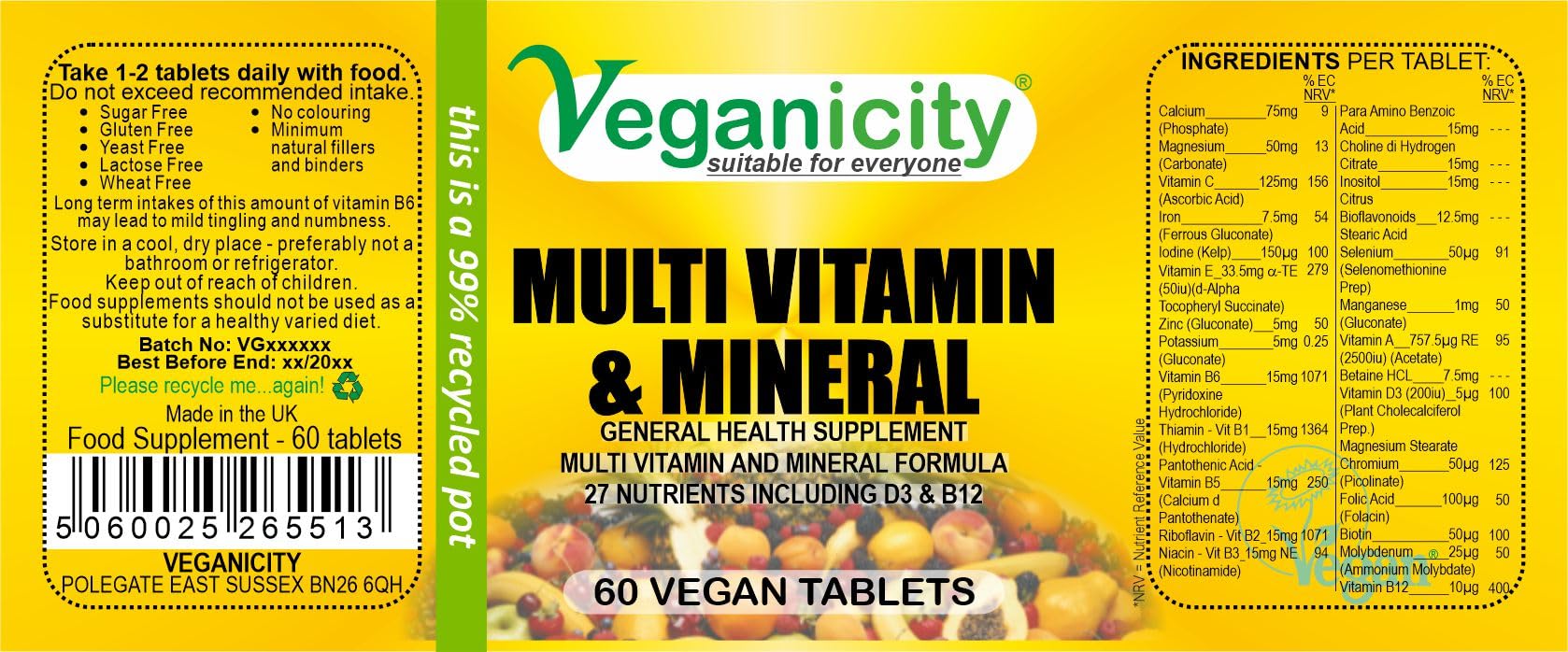 Veganicity Multi Vitamin & Mineral : General Health and Well-Being Supplement : 60 Tablets, in a Planet-Friendly 99% Recycled Pot