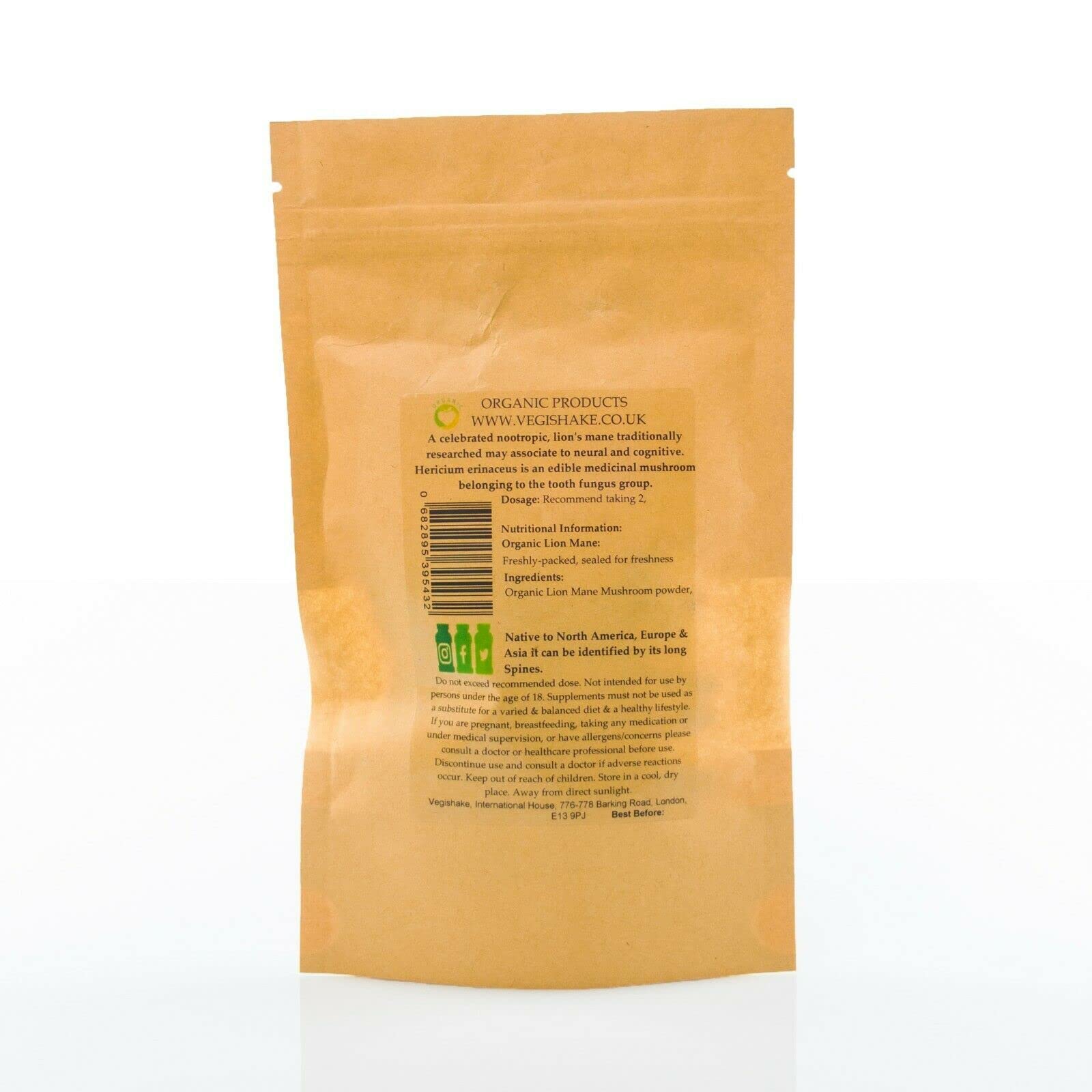 vegishake Organic Lions Mane Mushroom Powder Hericium erinaceus Polysaccharides Immune Cognitive Vegan (100g)