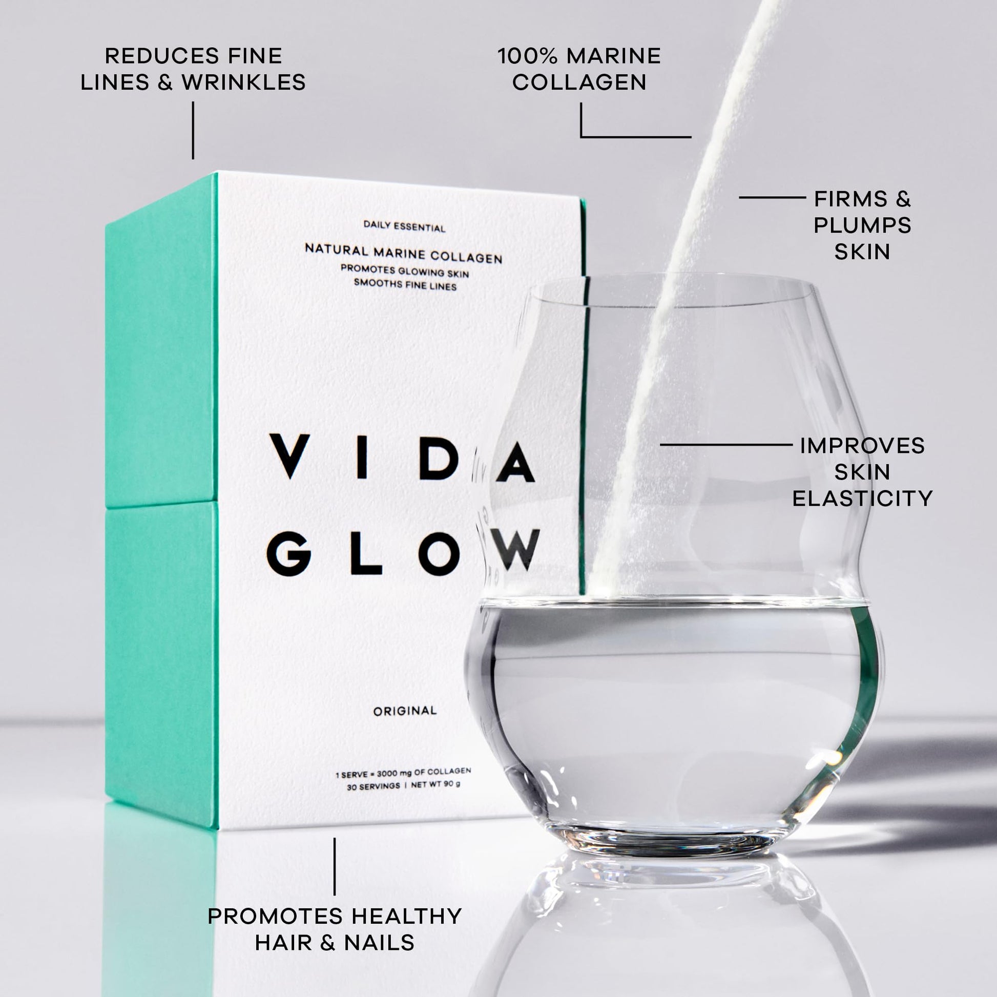 Vida Glow - Natural Hydrolysed Marine Collagen Sachets | Promotes Glowing Skin + Smooths Fine Lines (Original, 30 Sachets)