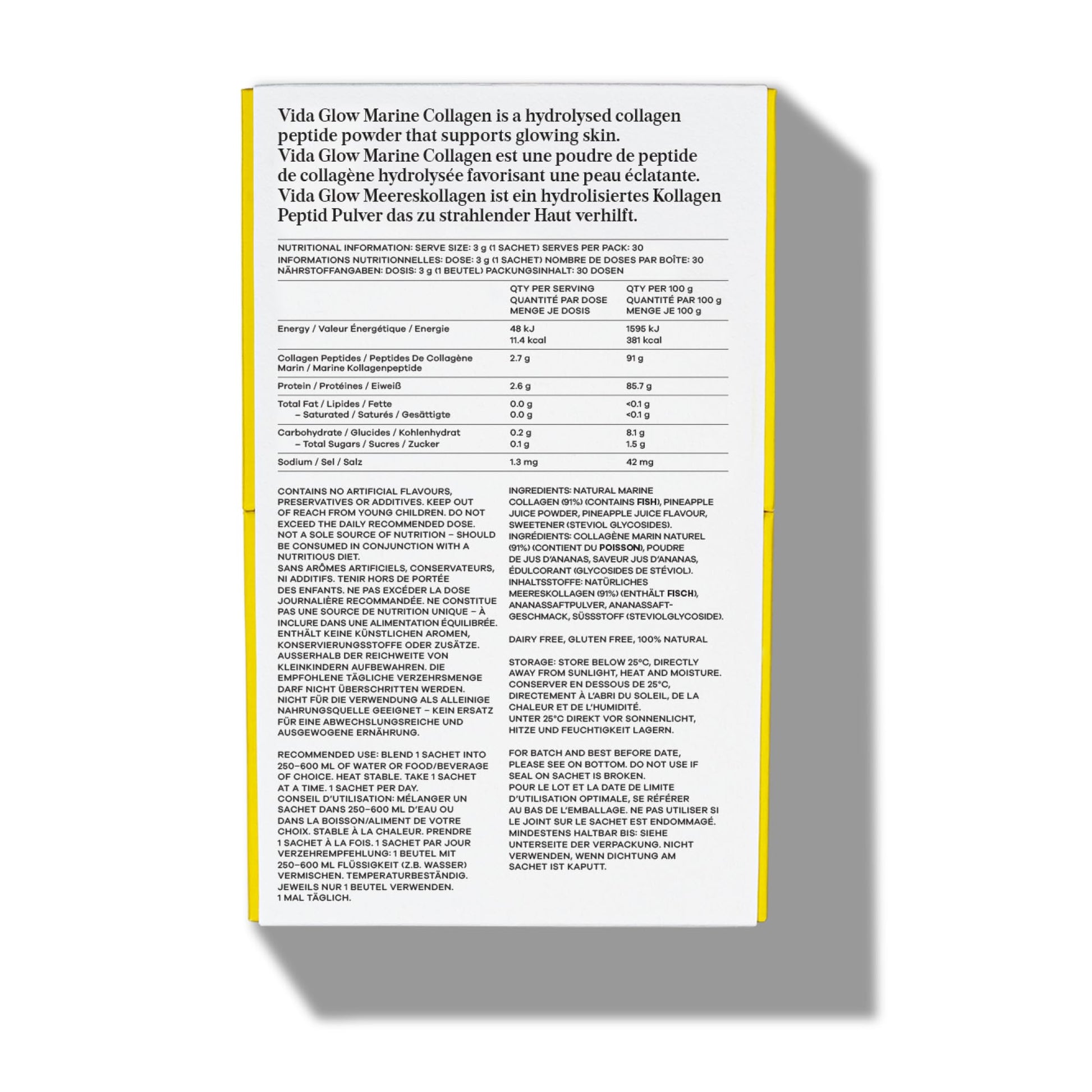 Vida Glow - Natural Hydrolysed Marine Collagen Sachets | Promotes Glowing Skin + Smooths Fine Lines (Pineapple, 30 Sachets)