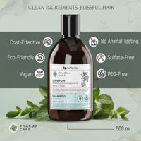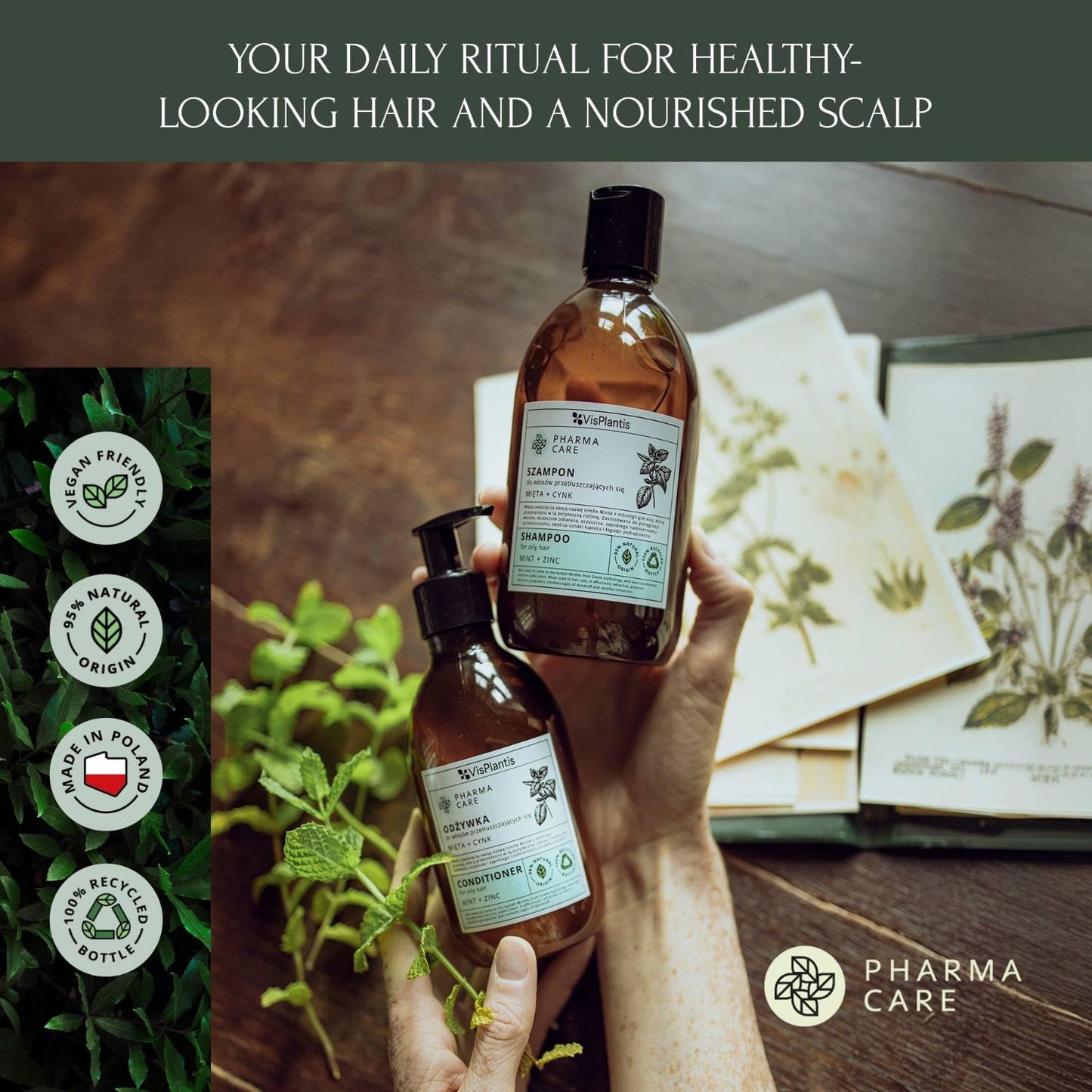 Discover the perfect balance of care and effectiveness with Vis Plantis Pharmacare shampoo for oily hair. Our advanced pharmaceutical-quality herbal formula, enriched with natural mint and zinc, offers a pharmaceutical-grade solution for those battling oily and greasy hair. This SLS-free & SLES-free shampoo provides a gentle yet thorough cleansing experience, ideal for anyone seeking a reliable solution for greasy hair and scalp. Key Features:Refreshing Mint: Infused with the refreshing power of mint, our shampoo revitalizes your scalp, leaving a lasting sensation of freshness.