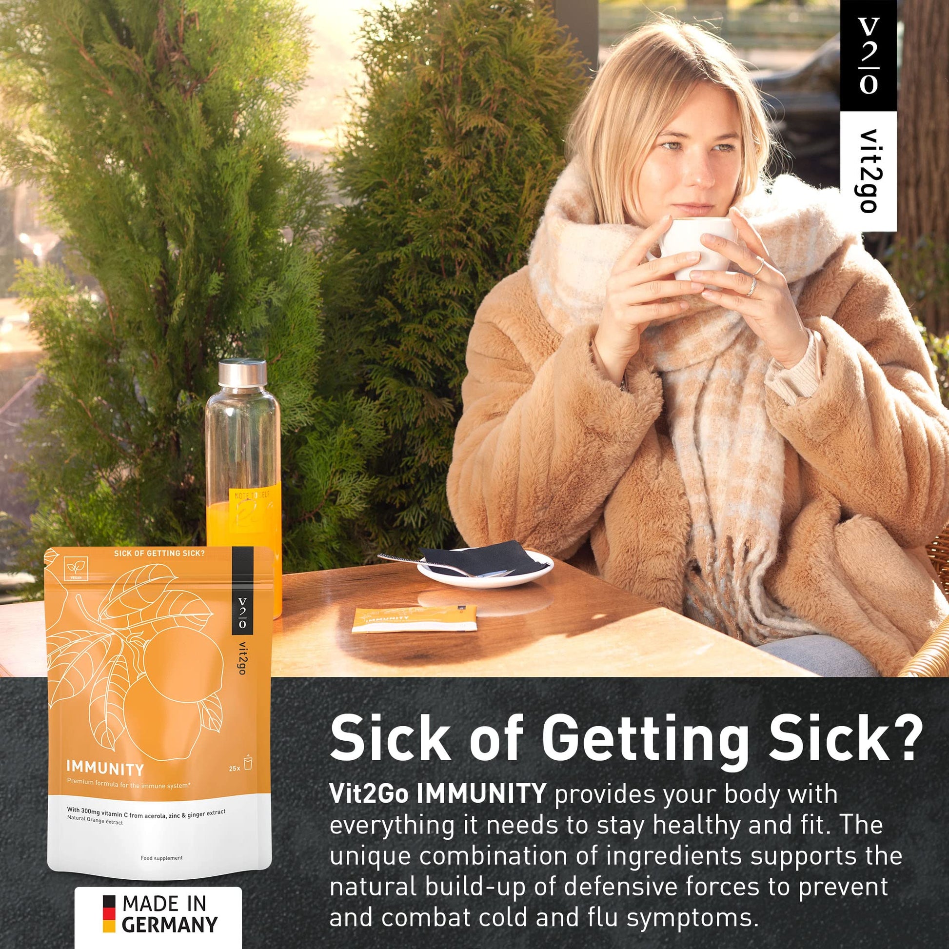 Vit2Go Vit2go Immunity - Booster with Vitamins (A, B, C, D & K), Vitamin C Zinc & Ginger Extract, Immune System Complex, Vegan Supplement Made in Germany (30)
