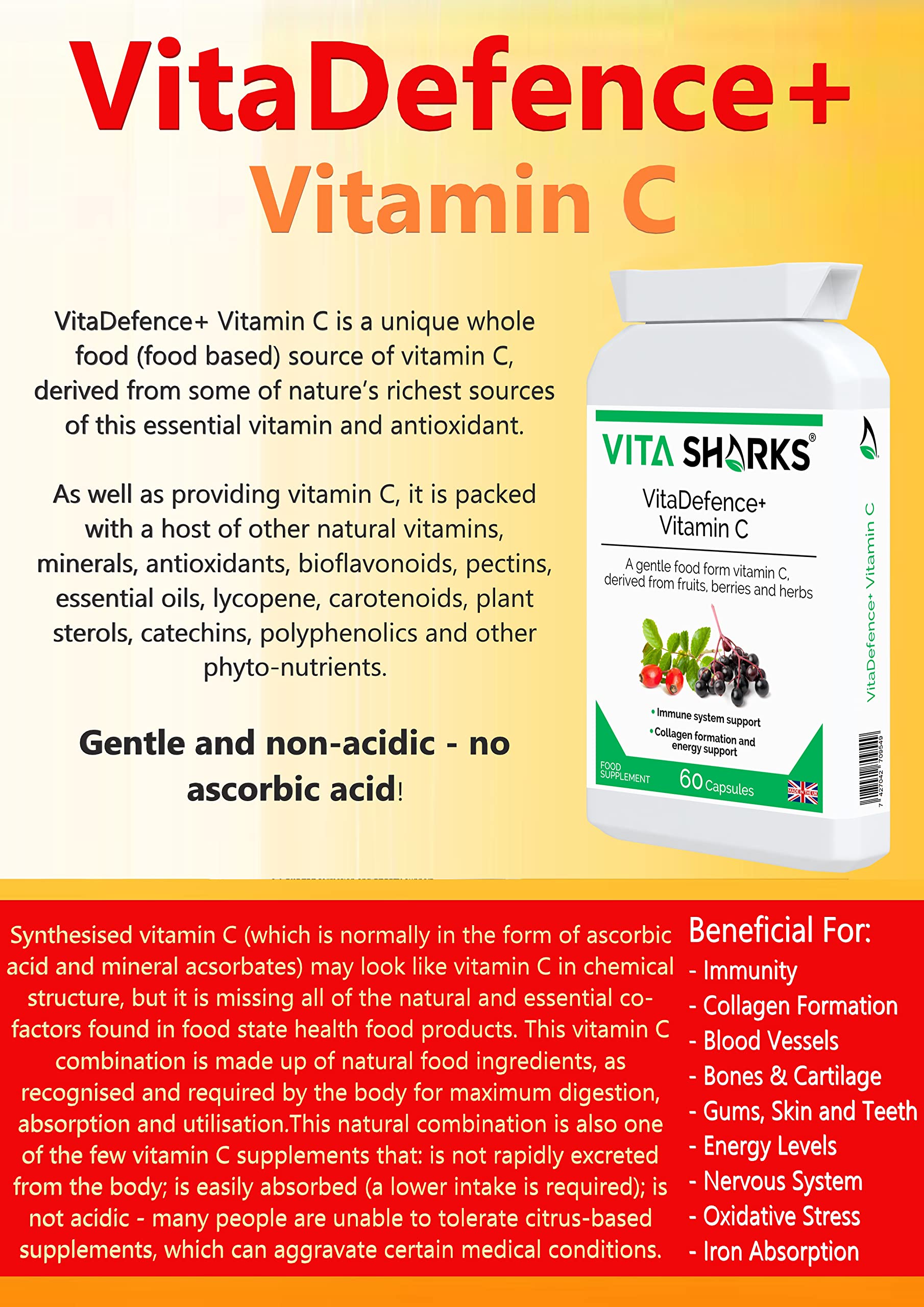 Vita Sharks VitaDefence+ Vitamin C - Bespoke Potent & Comprehensive All-in-One Vegan Anti-Oxidant Formula to Defend, Support & Boost Overall Immunity - Kosher