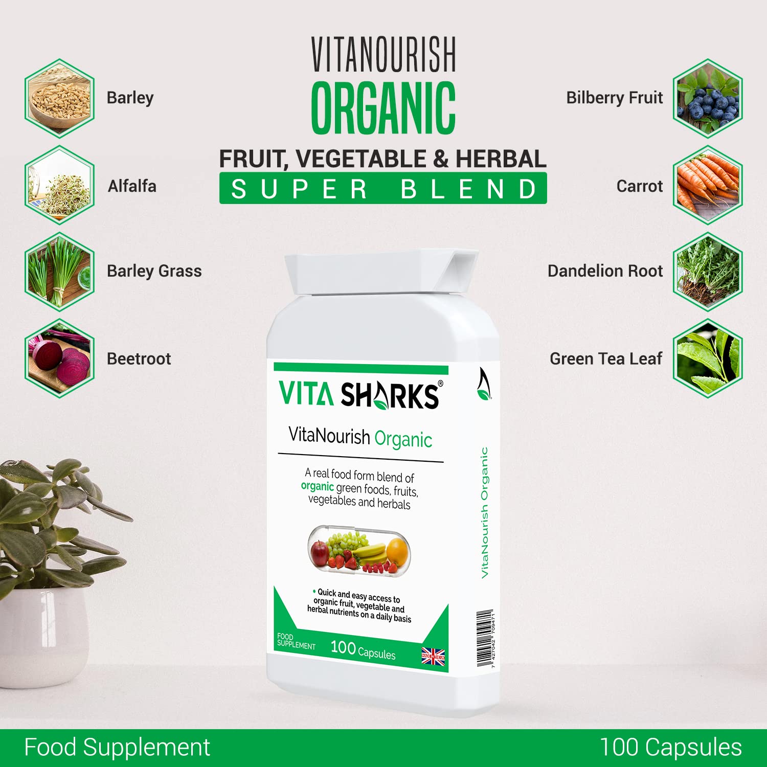 Vita Sharks VitaNourish Organic. Nutrient-Dense Potent Vegan Whole Food Supplement for Total Immunity. Essential Vitamins & Minerals from 100% Organic Kosher Fruit, Vegetable & Herbal Blend