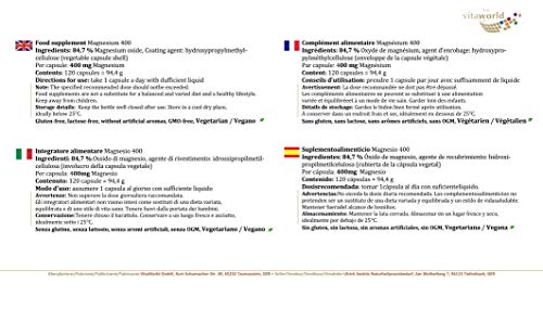 Vita World Magnesium 400Mg 120 Capsules Made in Germany