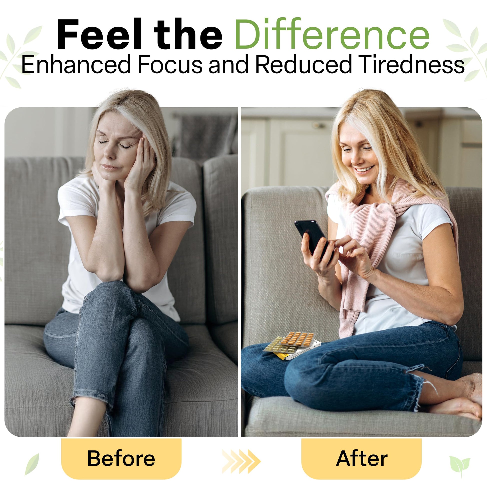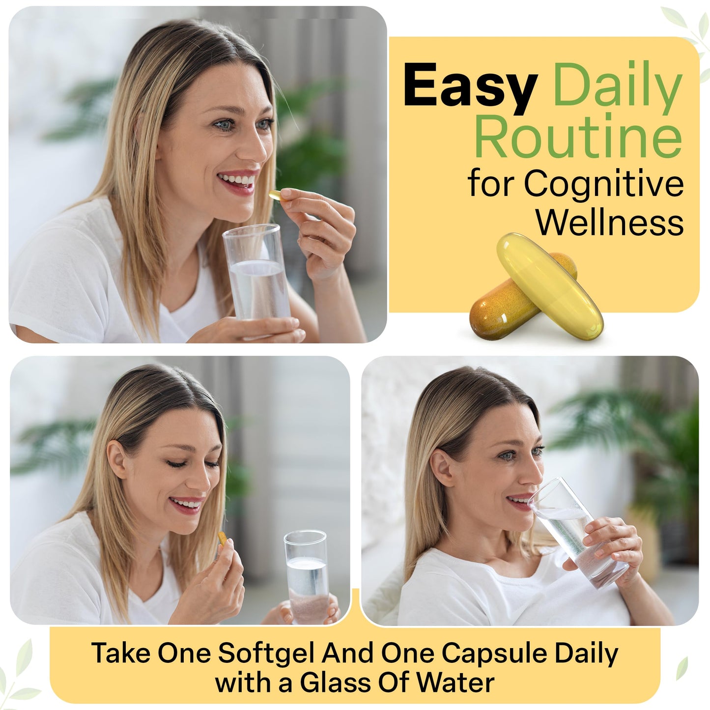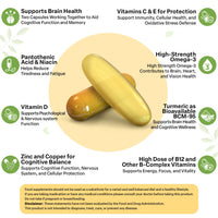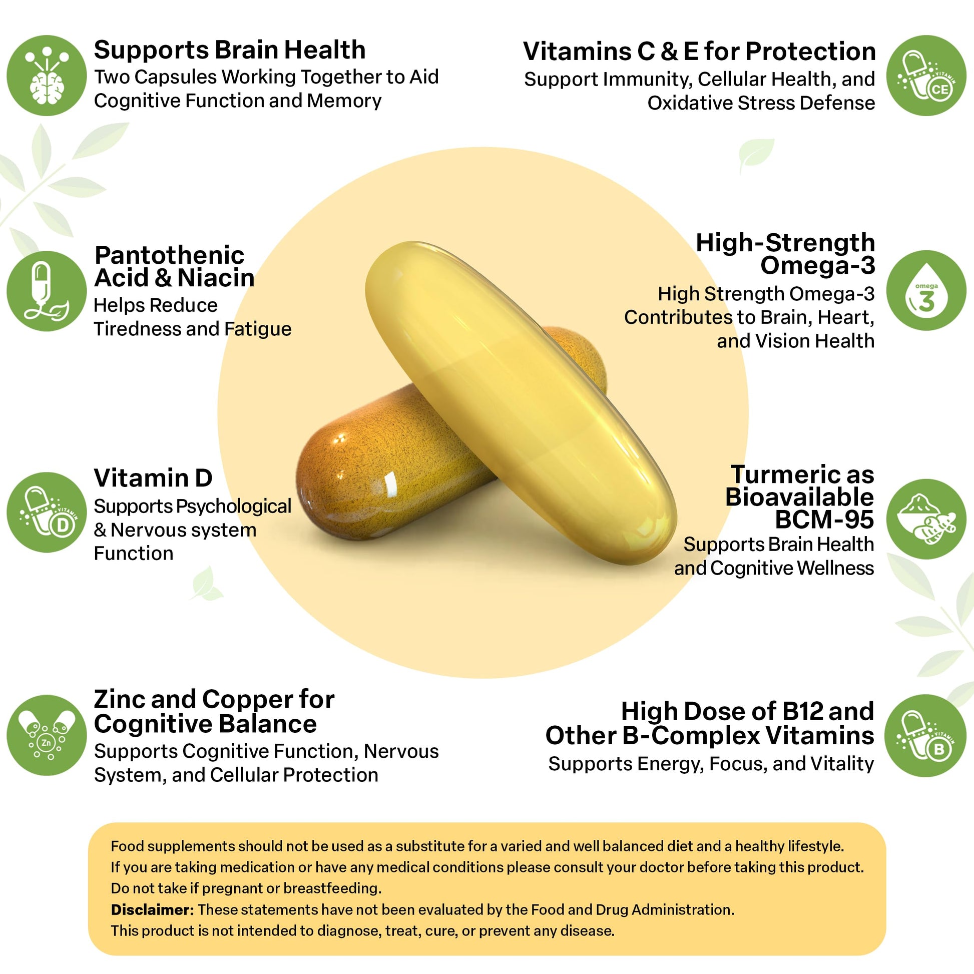 NeuroBright's brain function supplements are a comprehensive two-tablet system designed to support cognitive wellness and overall well-being. This innovative concentration supplement formula blends effective nutrients, potent botanicals, and essential Omega-3 fatty acids to enhance brain function and memory while addressing cognitive decline concerns. Each serving of this focus supplements for adults includes a powerful combination of 250mg DHA and 500mg EPA from Omega-3 fish oil, surpassing the levels needed for brain, heart, and vision support. These essential fatty acids also contribute to mood stability and cognitive clarity.More Info