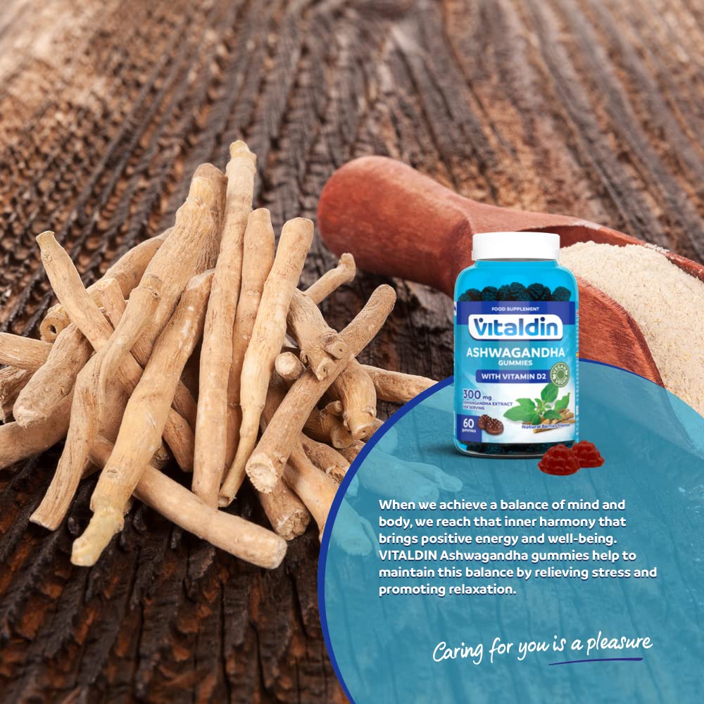 VITALDIN Ashwagandha Gummies – 300 mg Ashwagandha Root Extract KSM-66 & 1.000 IU Vitamin D2 – 60 Chewable Gummies (1 Month Supply) Berries Flavour – Anti-Stress adaptogen; Calm and Relaxation – Vegan