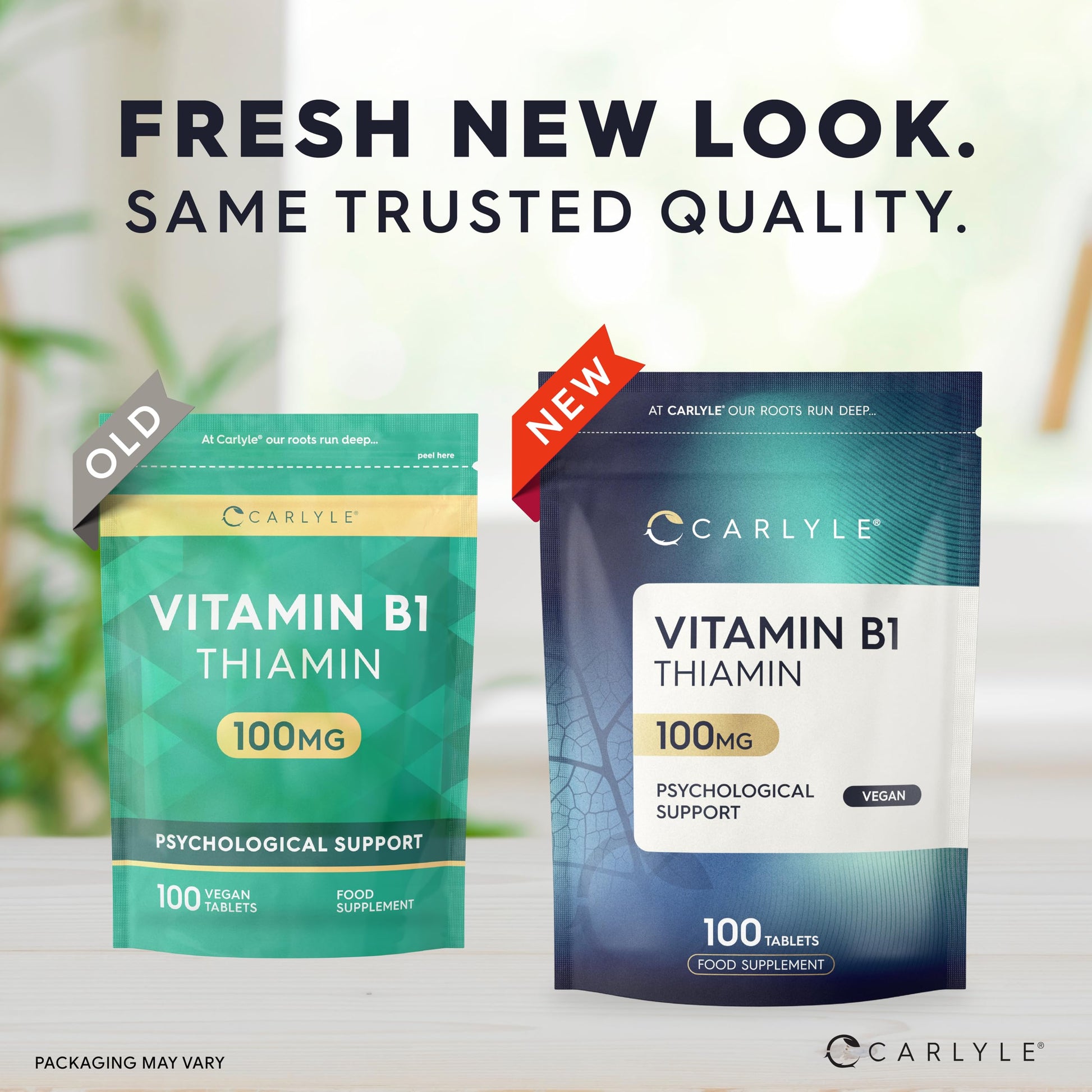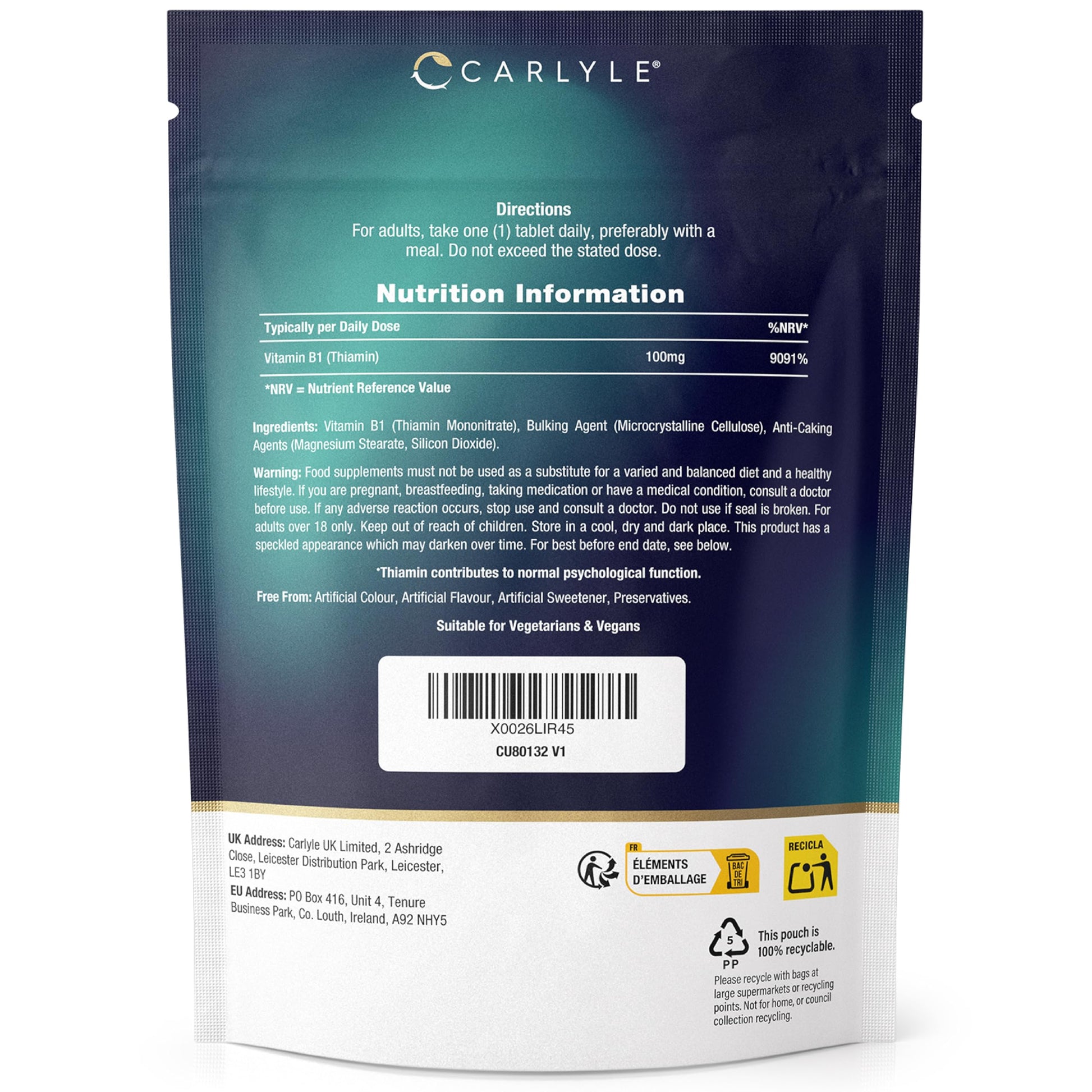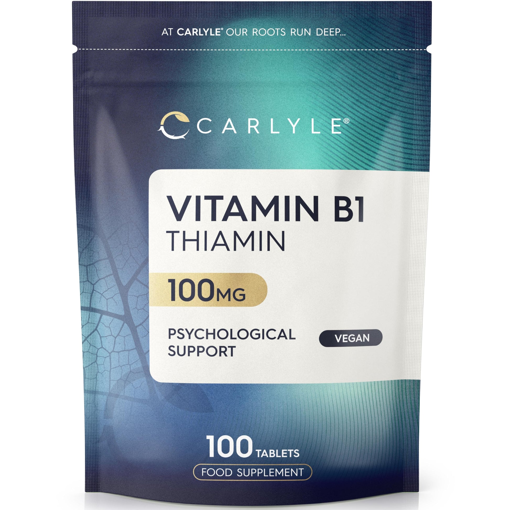 Vitamin B1 Thiamin 100mg Tablets | 100 Count (3+ Months Supply) | High Strength VIT B1 Thiamine Supplement | No Artificial Preservatives | by Carlyle