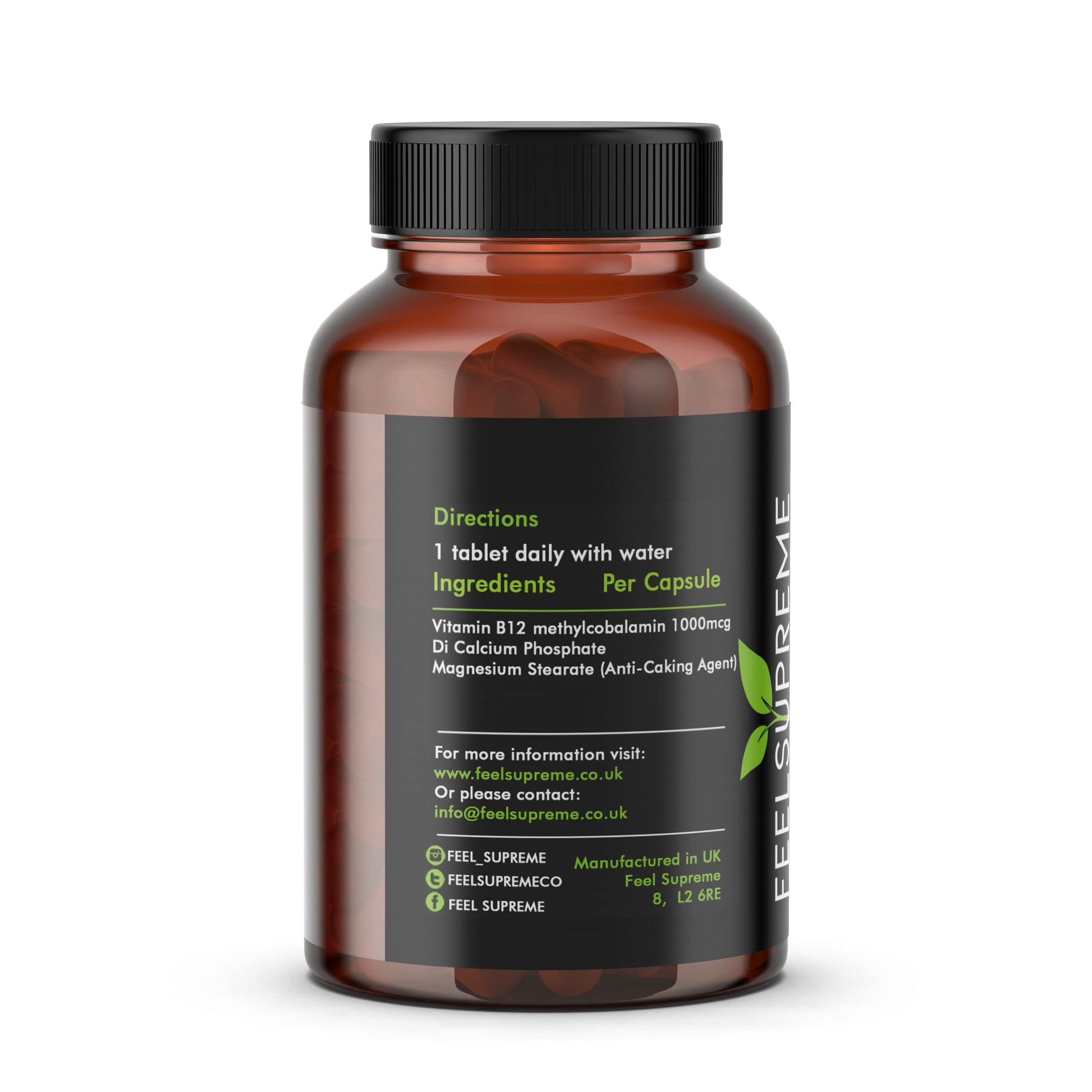 Vitamin B12 60 x 1000mcg Tablets - High Strength Supplement - Pure Methylcobalamin - Brain Function, Immune System, & Energy Support – for Men & Women - Made in The UK
