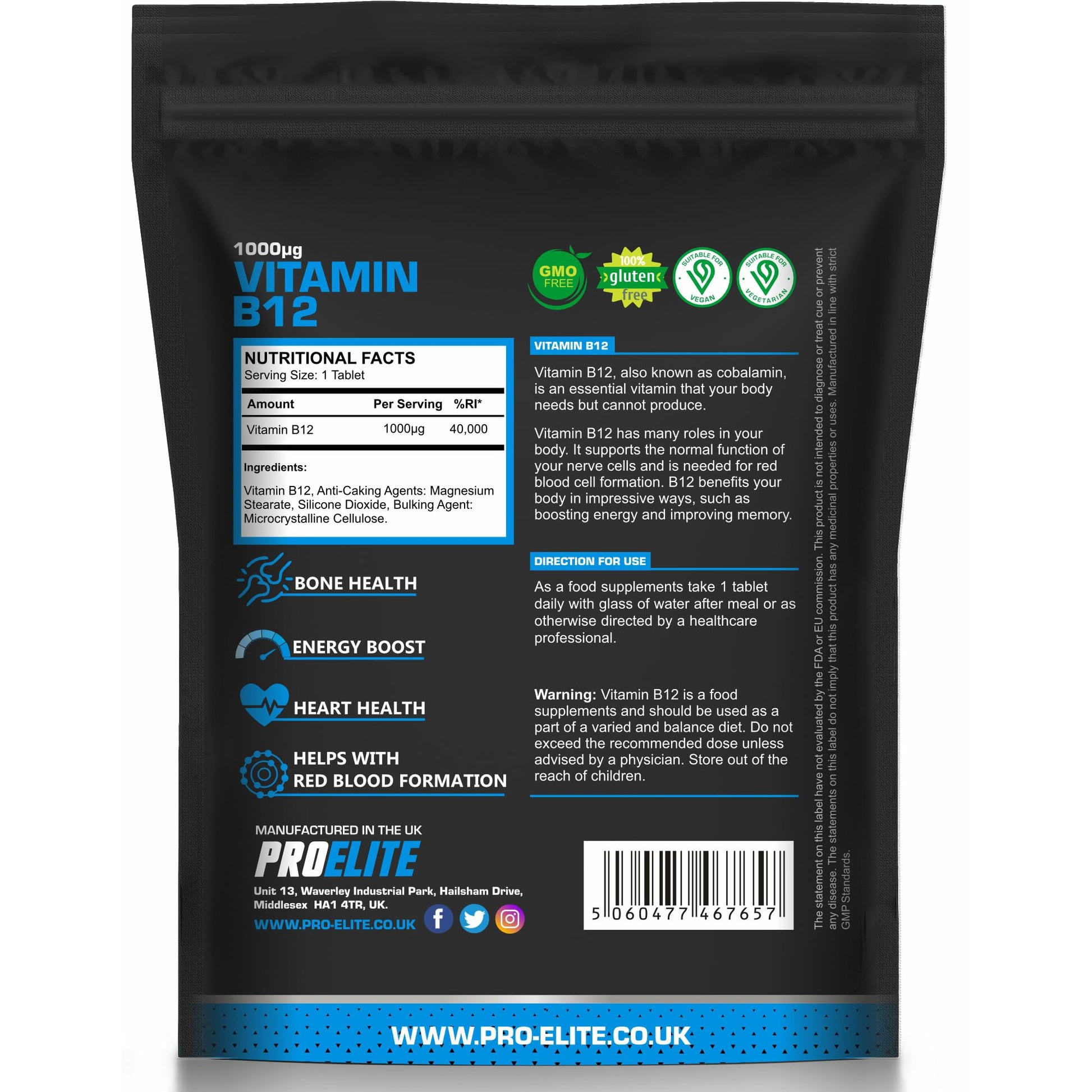 SEARCHING FOR VITAMINS TO BOOST IMMUNITY? PROELITE Vitamin B12 1000mcg tablets contain Vitamin B12 Methylcobalamin, the most active and readily absorbed form of Vit B12. Each easy-to-swallow 6mm tablet providing 1000mcg Methylcobalamin (40,000% NRV) aims to enhance energy levels and support brain health. Promoting the maintenance of healthy B12 levels with just one daily tablet.More Info