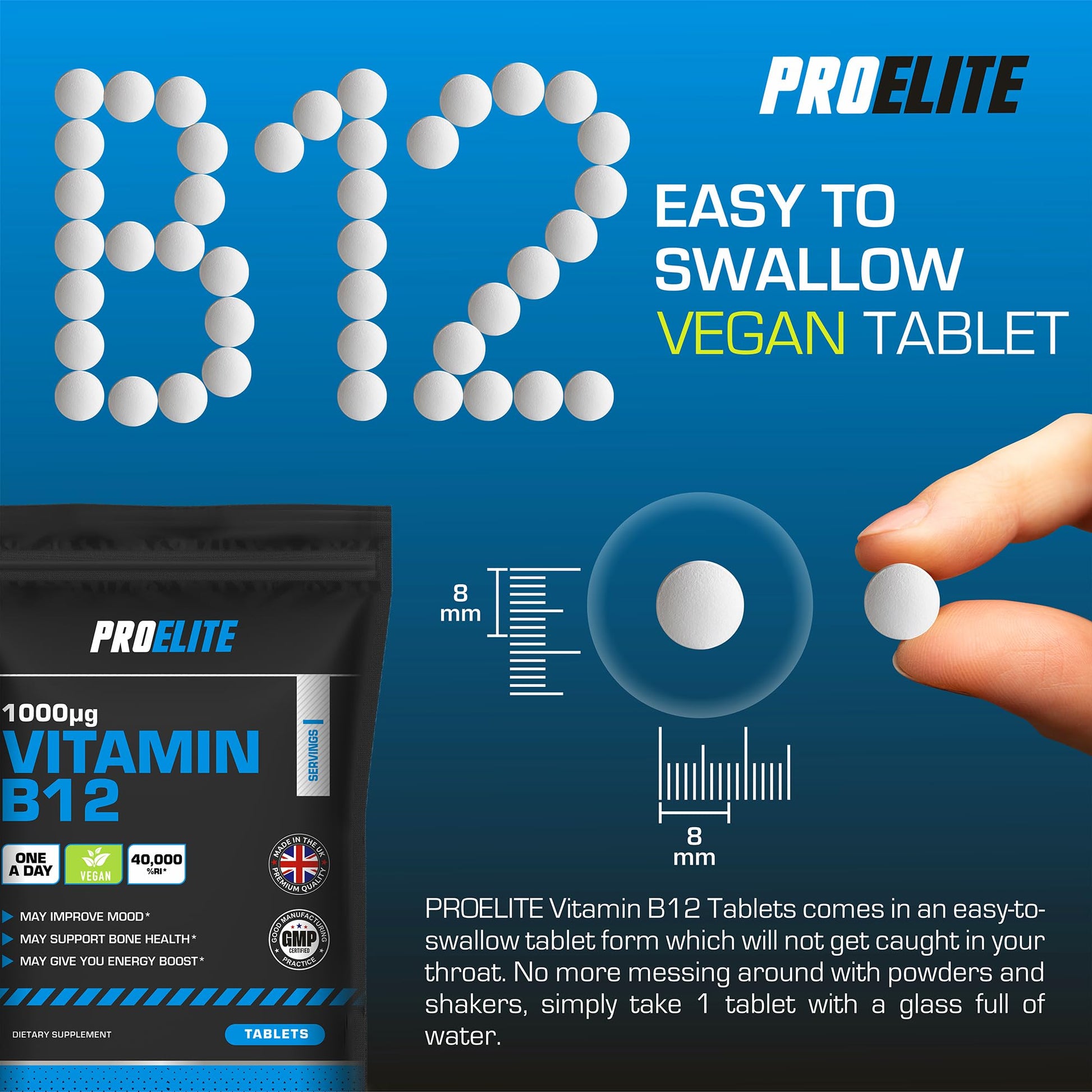 Vitamin B12 Tablets 365 High Strength 1000mcg Vegan B12 Supplement � Pure Methylcobalamin Tablets� Tiredness and Fatigue Tablets � Immunity Supplements Made in UK by PROELITE