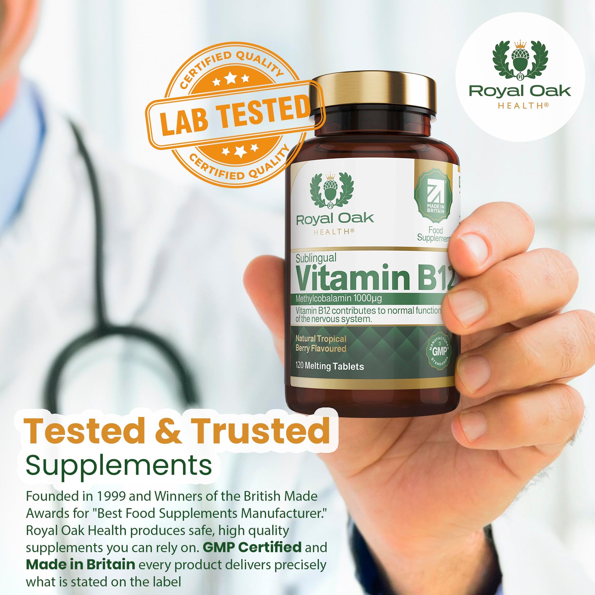 Vitamin B12 Tablets High Strength 1000mcg Sublingual Methylcobalamin, x120 Tablets (Tropical Berry Flavour) Active fast dissolving Vit B12 (4 Month Supply) Vegan Friendly Supplement - Royal Oak Health