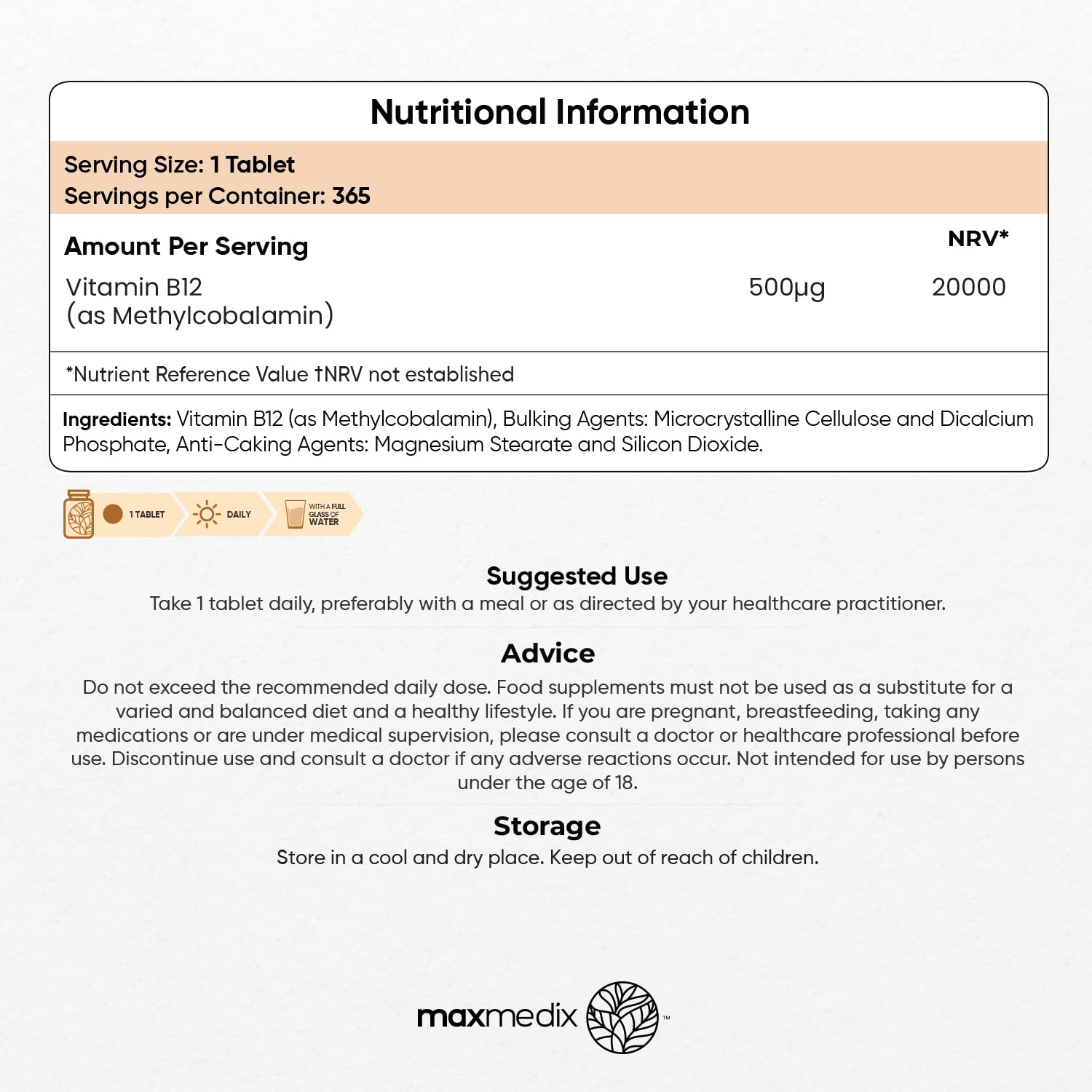 - MOST BIOACTIVE FORM OF VITAMIN B12: Our Vitamin B12 tablets high strength deliver an optimal dose of Methylcobalamin per serving to ensure you feel energised throughout the whole day. Methylcobalamin is the most bioavailable and bioactive form of the B12 vitamin, which means it is most easily absorbed by the body and provides better results than any other form. Each bottle contains 365 Vit B12 energy tablets to keep you replenished for one whole year.